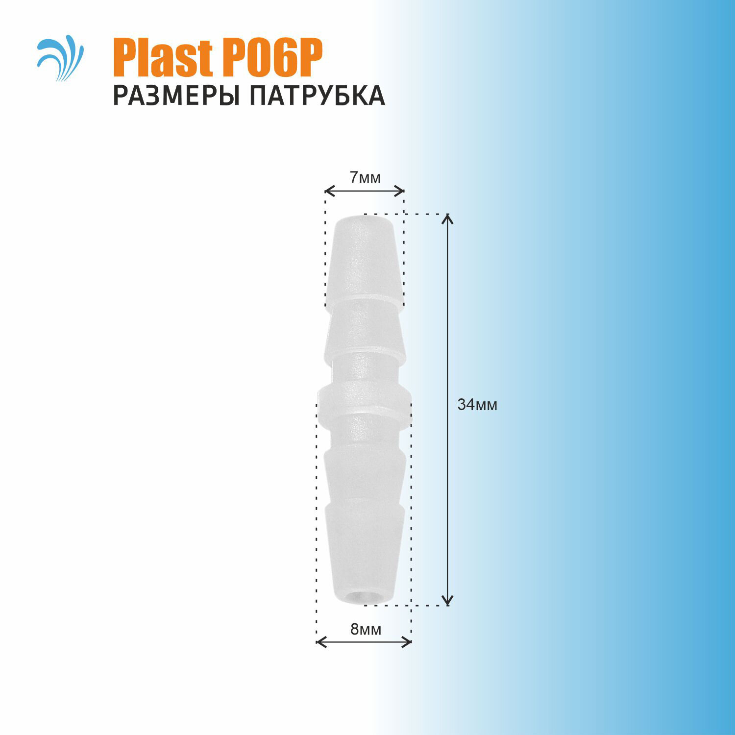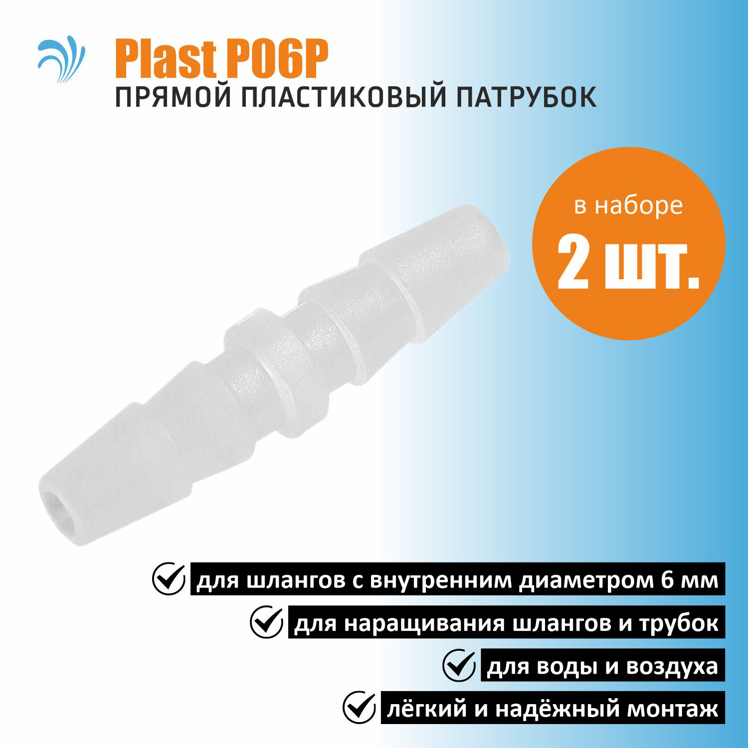 | Дополнительная информация | прямой пластиковый патрубок соединения шлангов с внутренним диаметром 6мм |