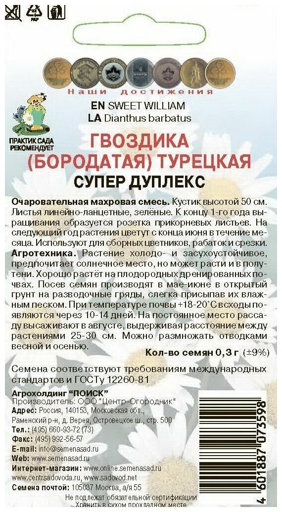10 цен на Семена цветов Гвоздика Турецкая "Супер Дуплекс" 0,3 г