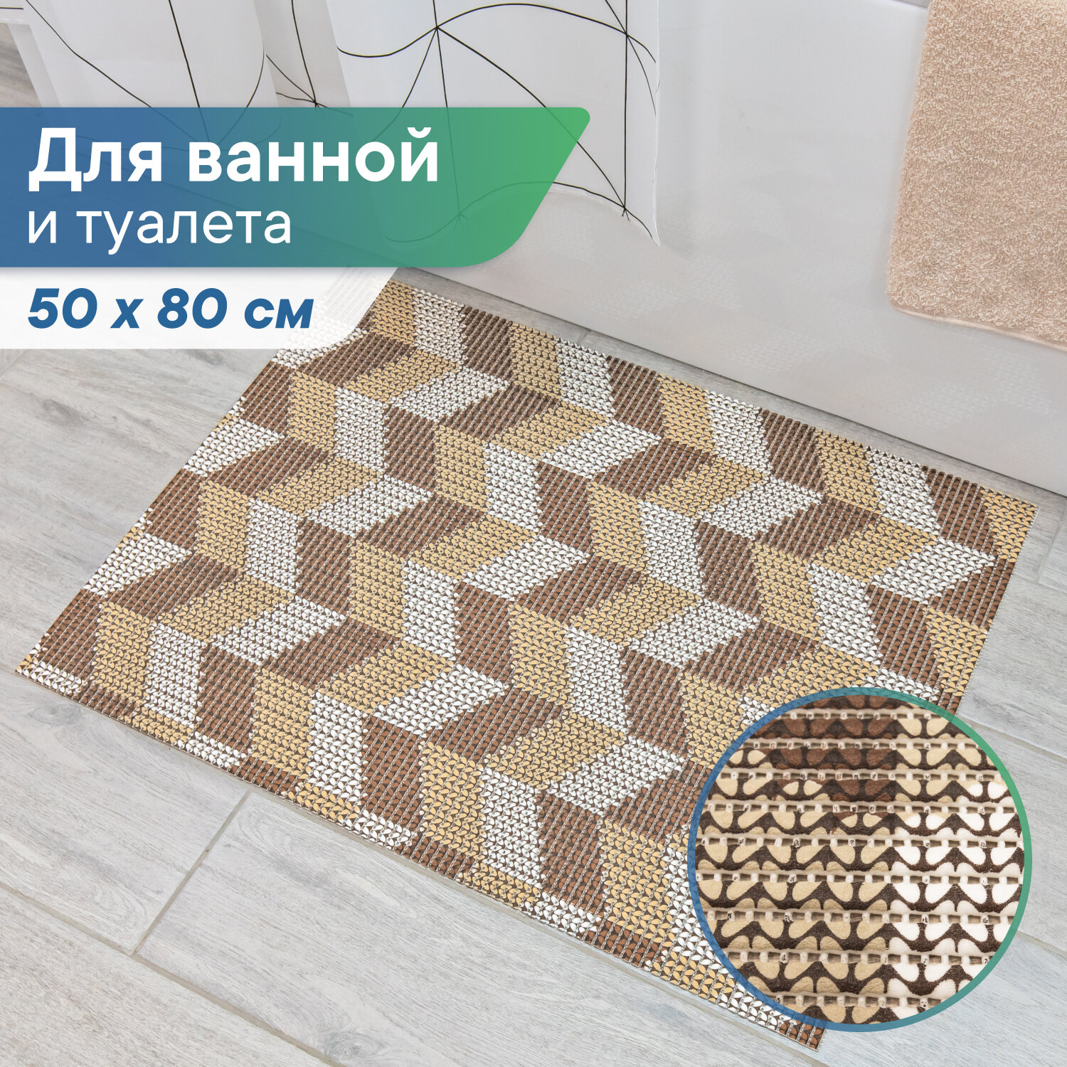 Коврик для ванны душа и туалета VILINA из вспененного ПВХ противоскользящий мягкий безворсовый 50х80см рисунком 120BR 345 ₽
