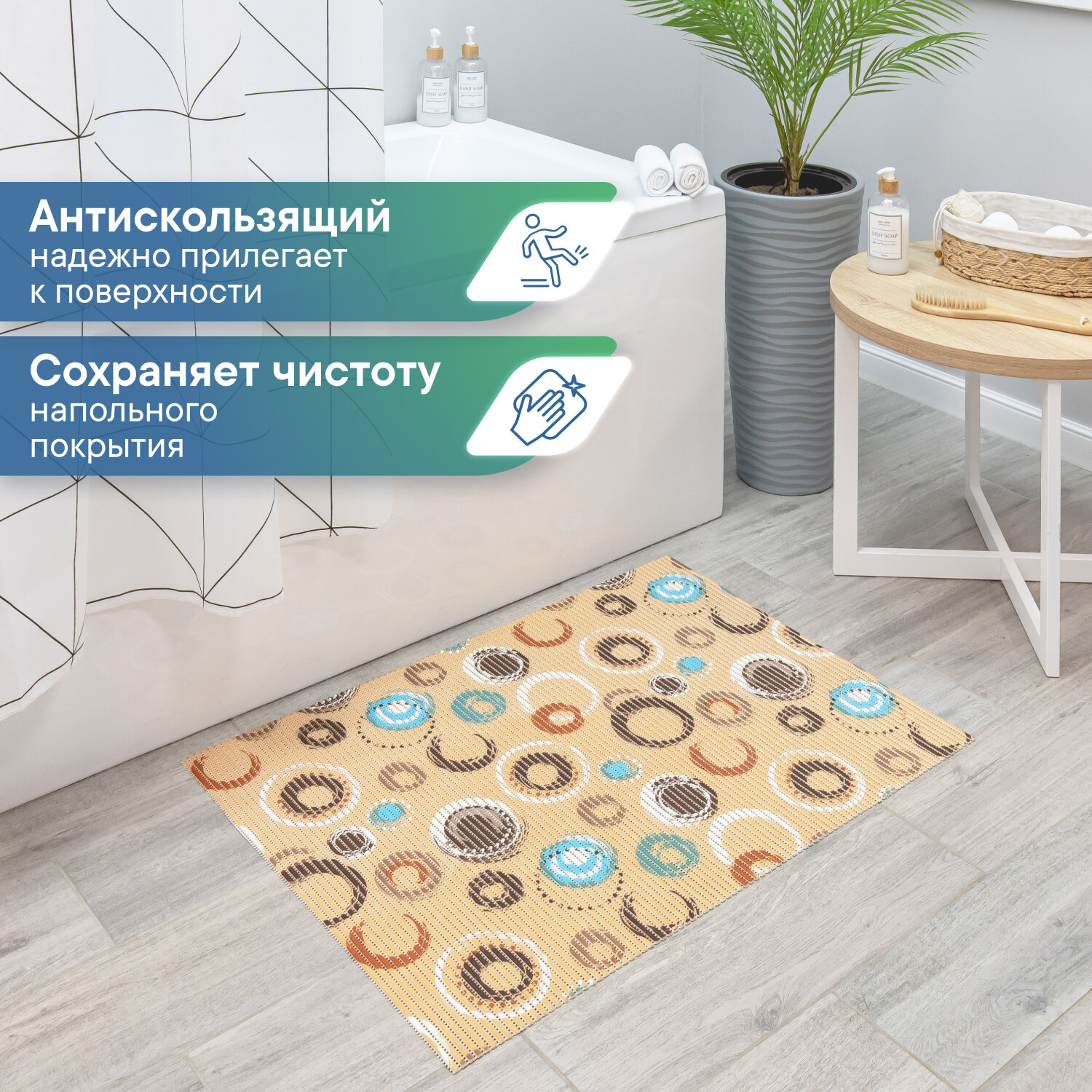 Коврик для ванны душа и туалета VILINA из вспененного ПВХ противоскользящий мягкий безворсовый 50х80 с рисунком V13 бежевый 345 ₽