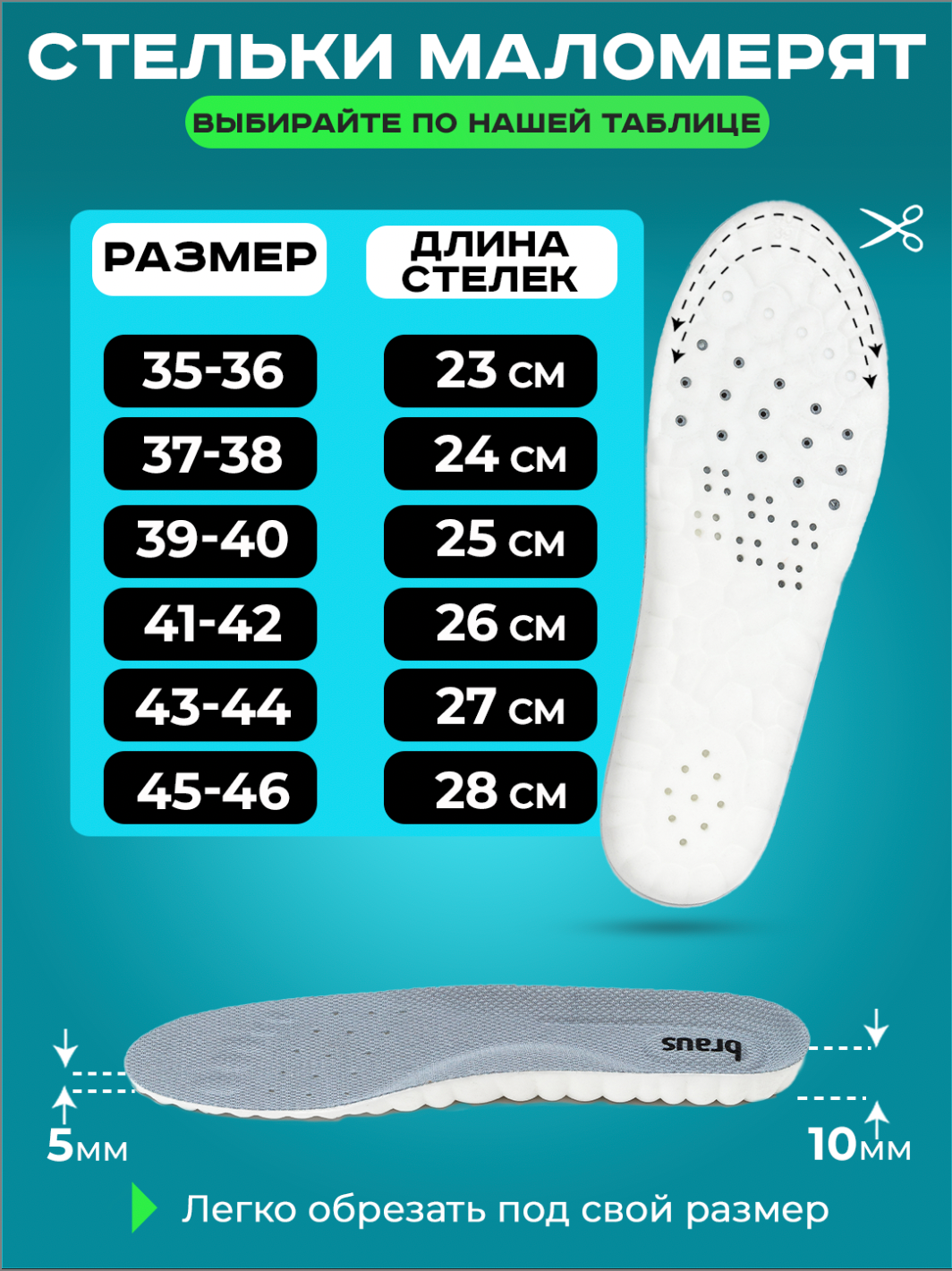 10 цен на Стельки для обуви кроссовок мужские женские спортивные ортопедические 37-38 Braus