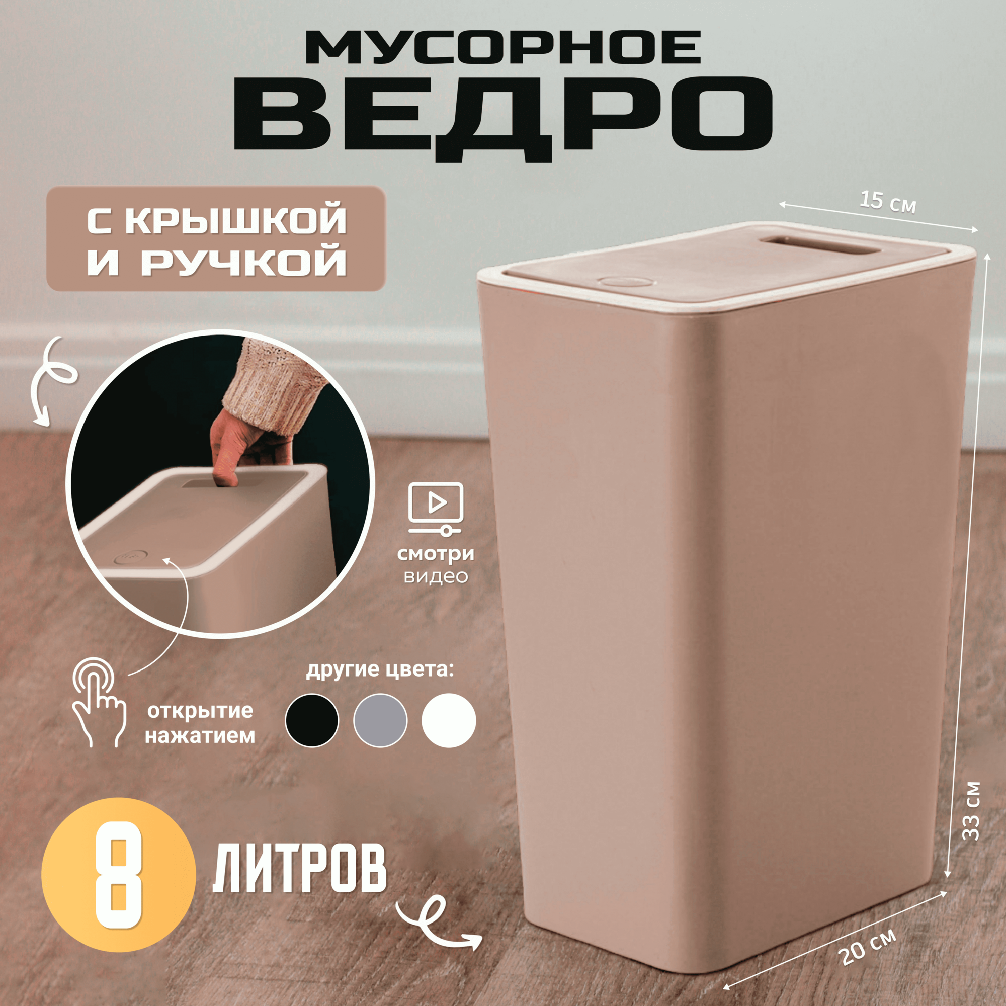 Мусорное ведро для кухни, туалета, офиса, с крышкой, 8 литров. 977 ₽