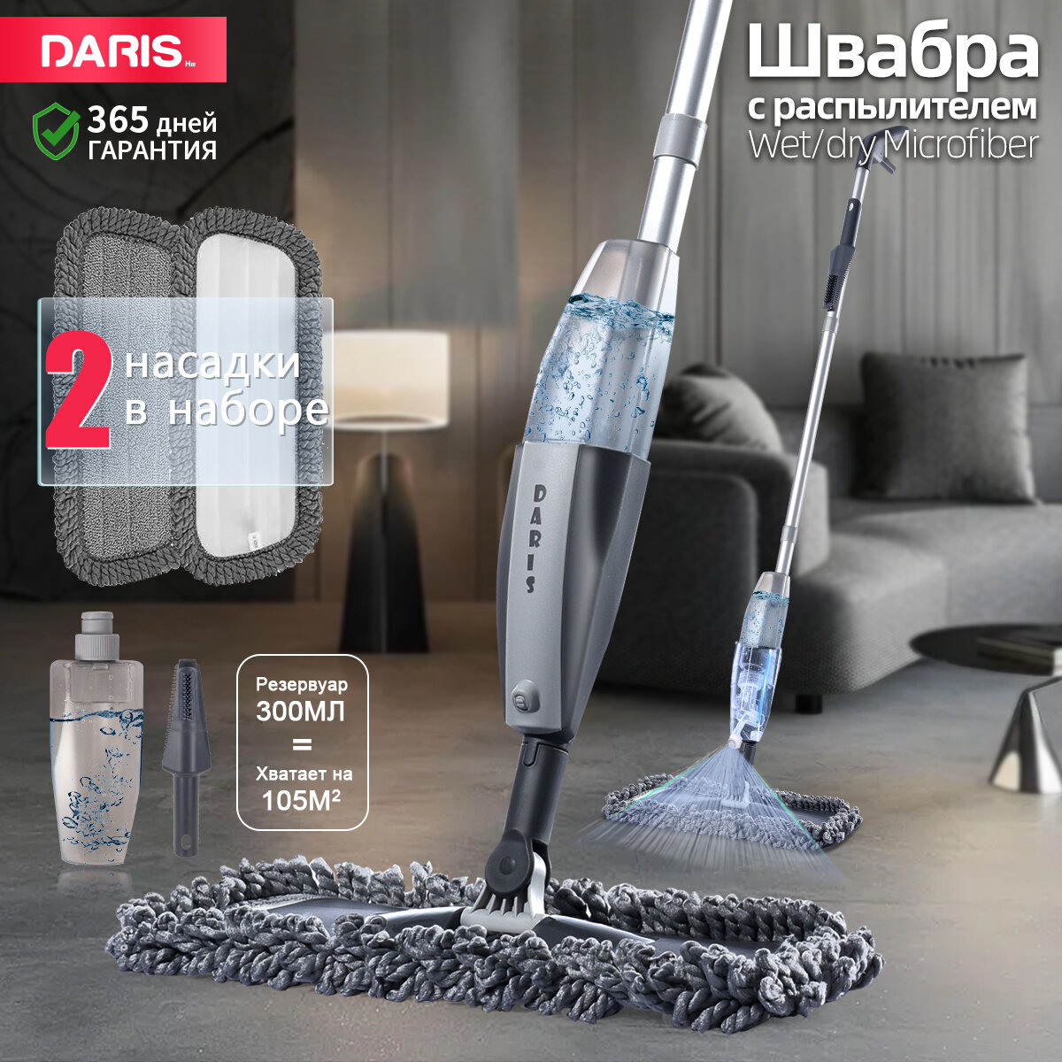 10 цен на Швабра Daris, с распылителем, с насадками, серая, 4 насадки, длина ворса 43см