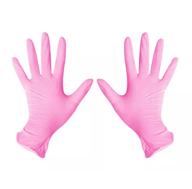 Перчатки маникюрные FOXY-GLOVES нитриловые, одноразовые, смотровые, неопудренные, р-р M, розовый, 50 пар.