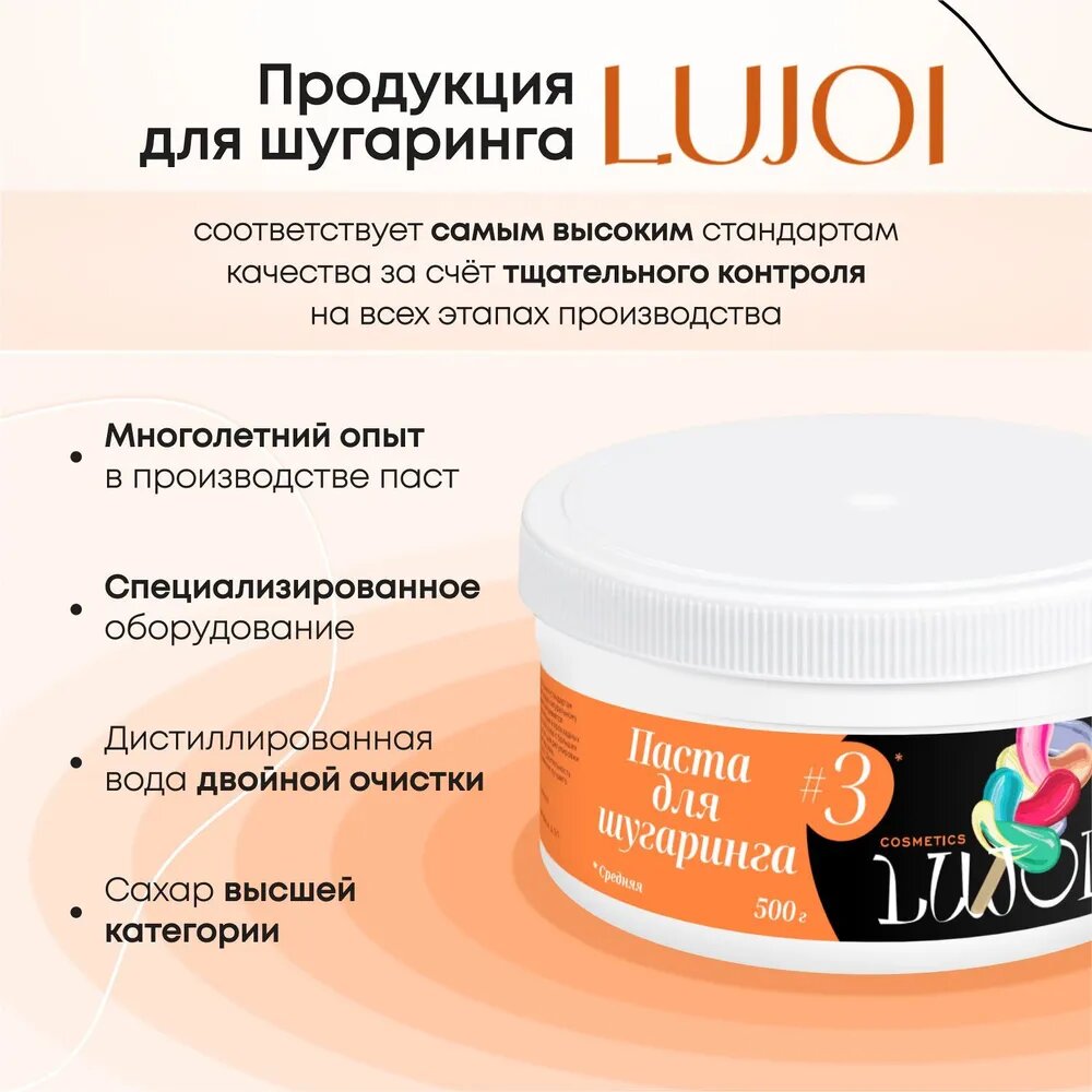 Сахарная паста LUJOI, 500г, для всех типов волос, гипоаллергенная, средняя плотность информация: