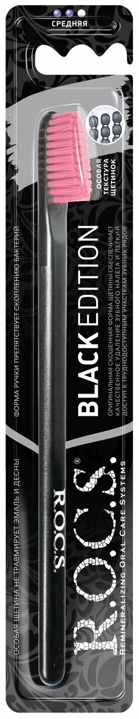 Зубная щетка R.O.C.S. Black Edition Classic, средняя жесткость, черная/розовая 384 ₽