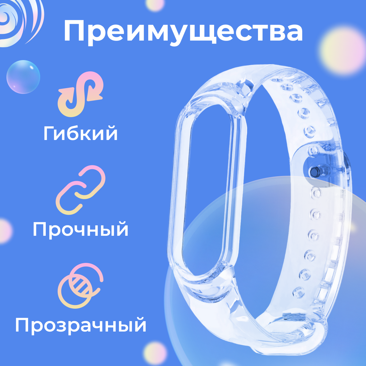 Прозрачный Силиконовый монобраслет для фитнес трекера Xiaomi Mi Band 3 и 4 / Сменный спортивный браслет на смарт часы Сяоми Ми Бэнд 3 и 4 / Прозрачный 397 ₽