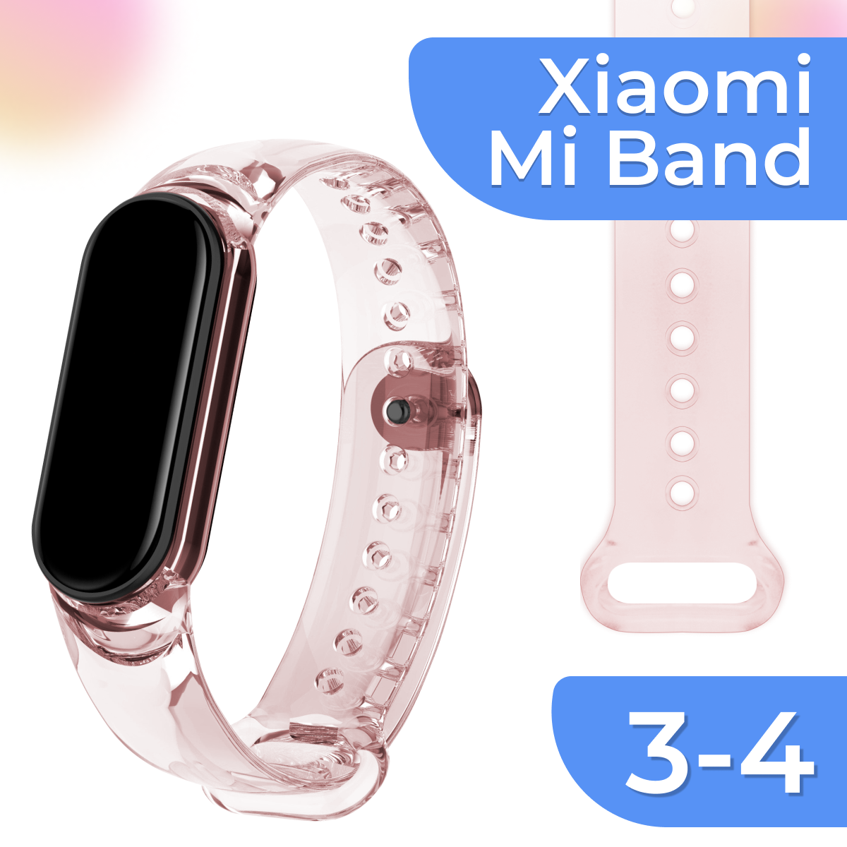 Прозрачный Силиконовый монобраслет для фитнес трекера Xiaomi Mi Band 3 и 4 / Сменный спортивный браслет на смарт часы Сяоми Ми Бэнд 3 и 4 / Светло-розовый информация: