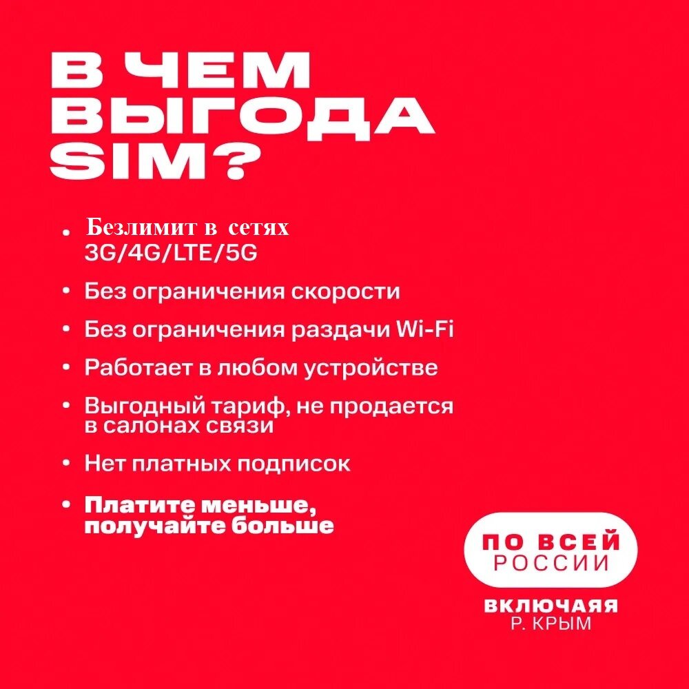 SIM-карта Безлимит по РФ с Wi Fi, для всех устройств, 990 р / в месяц/ сим карта