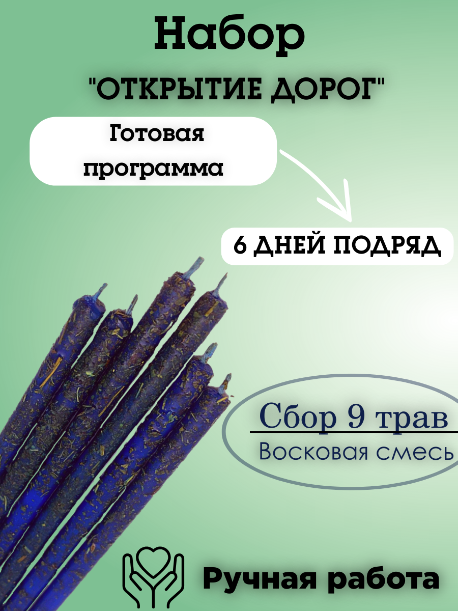 Магические свечи с травами "Открытие дорог". Свечи из воска для ритуалов и гадания, восковые, набор свечей 6шт информация: