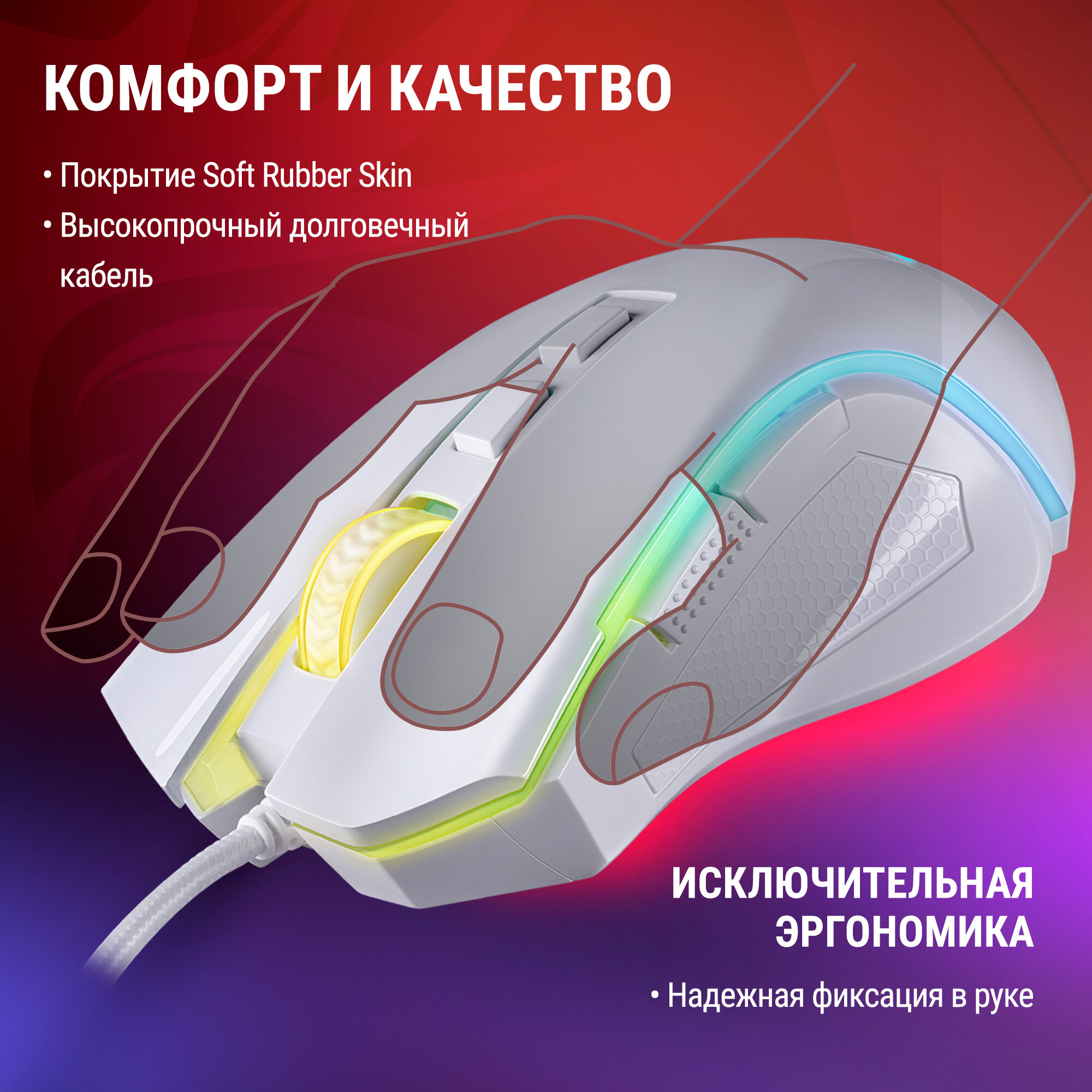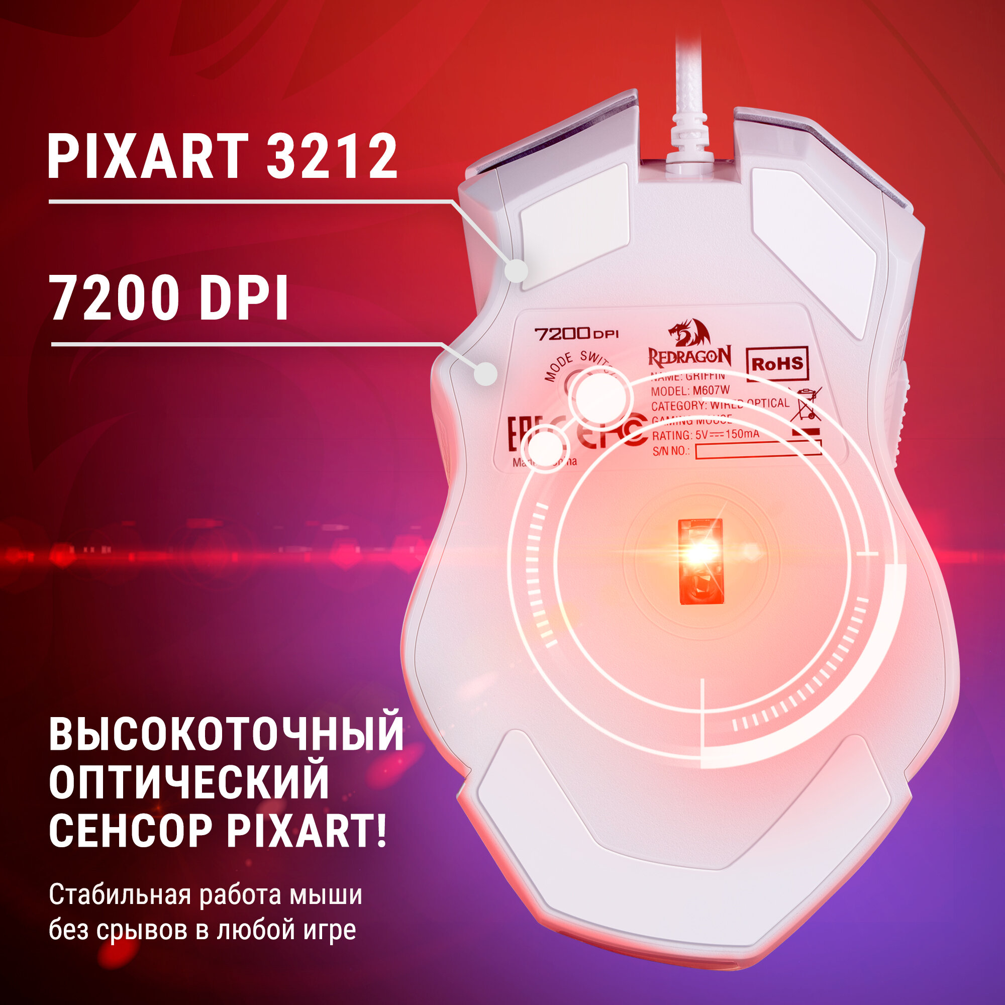 Игровая мышь Redragon Griffin RGB, для правой руки, оптическая, 7 кнопок, 7200dpi, белая информация: