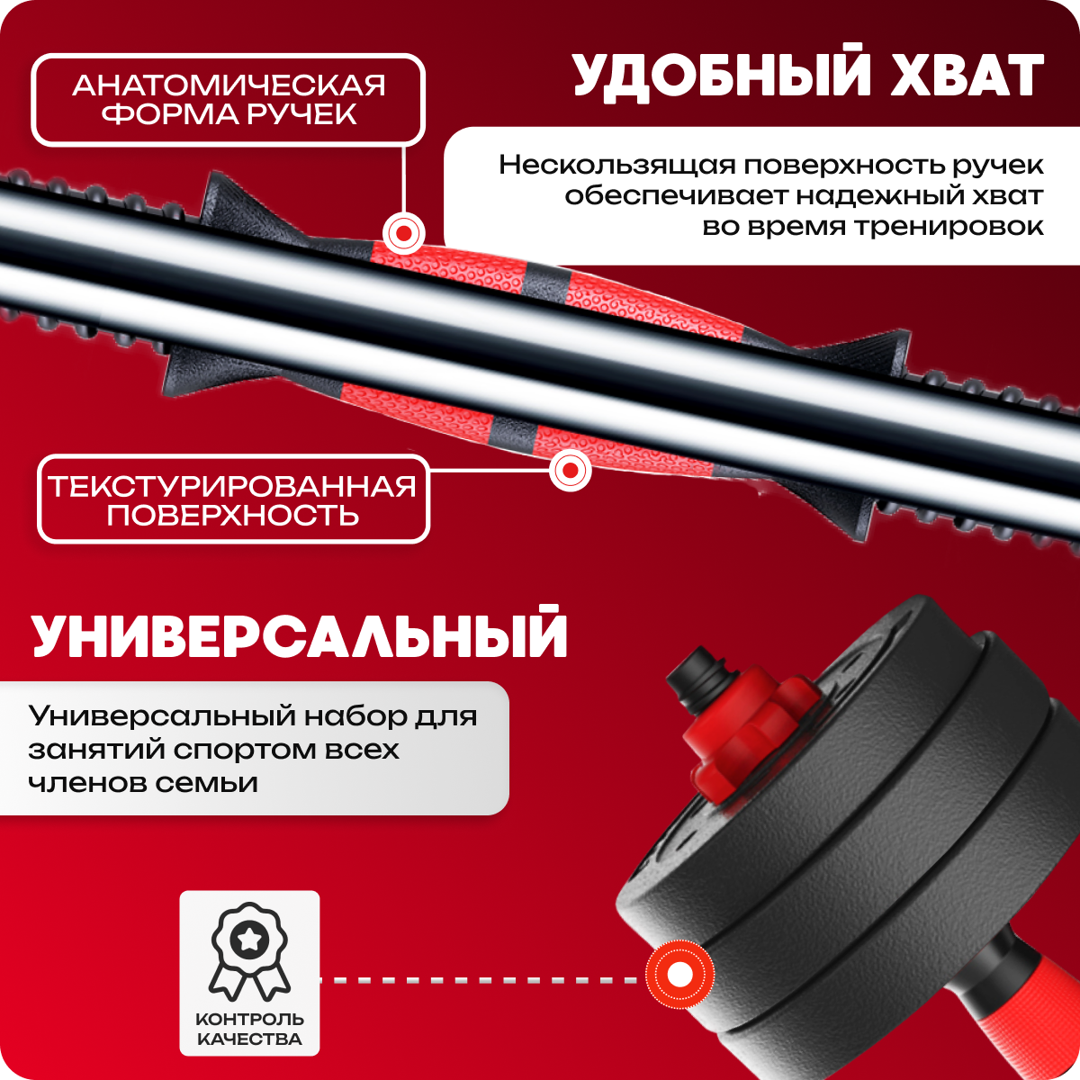 Гантели разборные ТИТАН для фитнеса + штанга спортивная, общий вес 20 кг, 2 гантели по 10 кг+ штанга 1 кг информация: