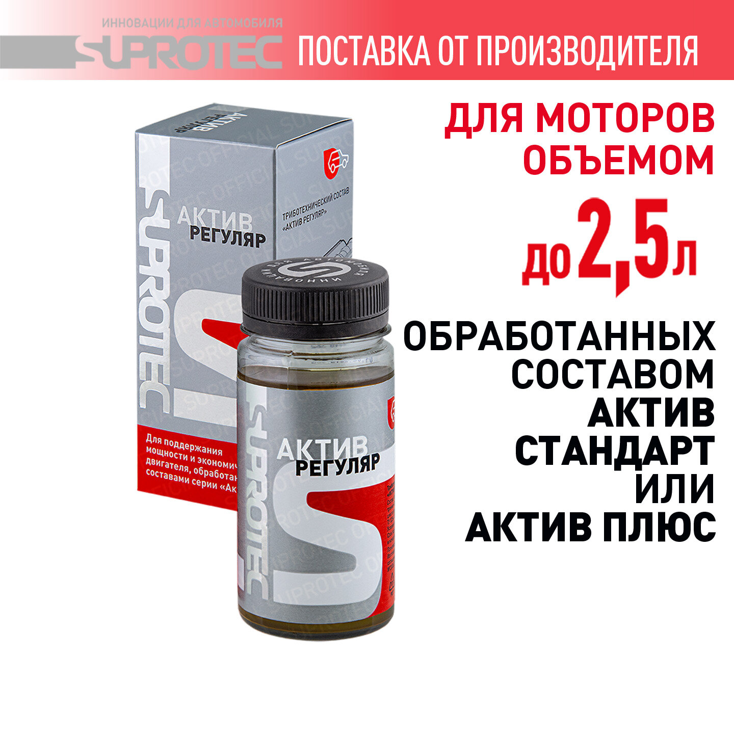 Присадка в масло для двигателя Супротек Актив Регуляр для поддержания эффектов после первичной обработки ДВС, 100мл информация: