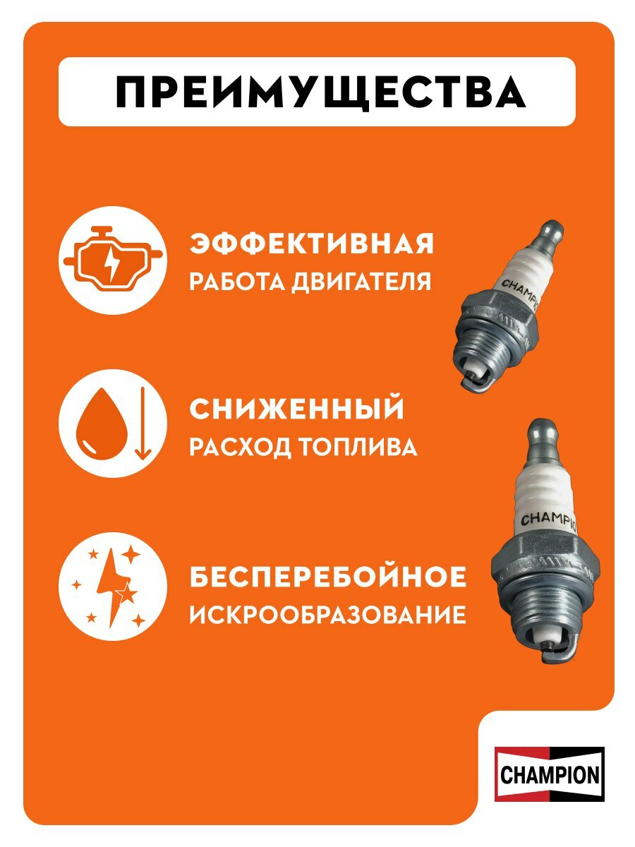 Отзывы на Свеча зажигания Champion RCJ6Y, для 2-тактных моторов, 4 штуки