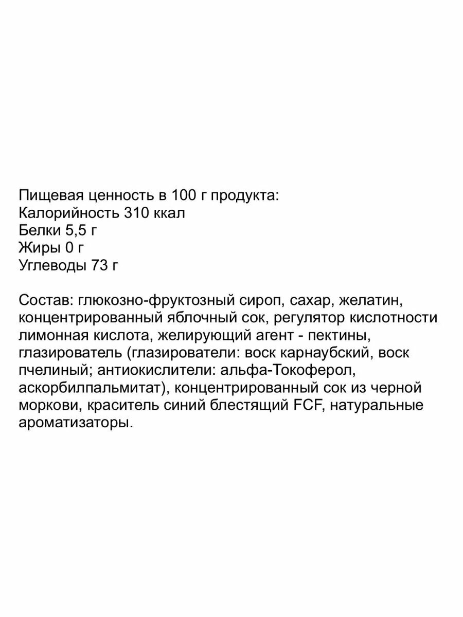 | Состав | желатин, сахар, глюкозно-фруктозный сироп |