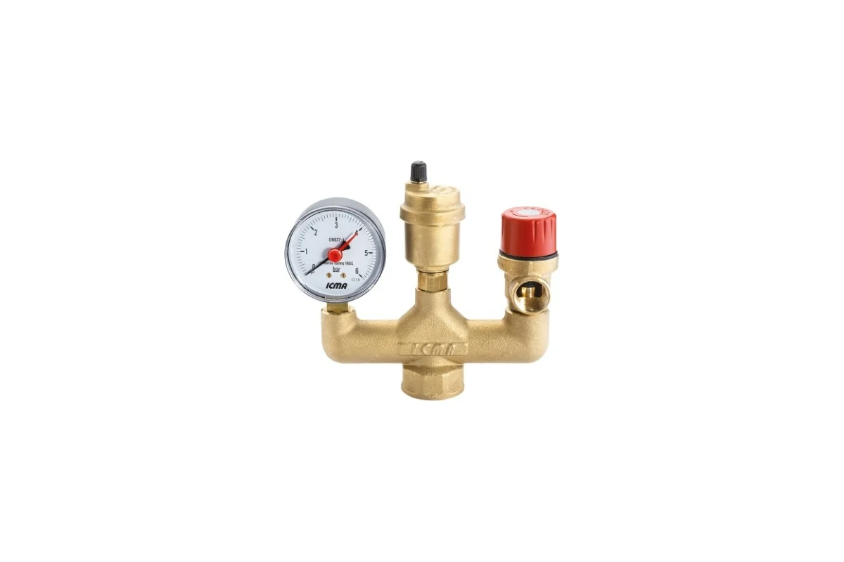 Отзывы на Группа безопасности котла (ICMA Италия) 1", латунь (автоматический воздухоотводчик, предохранительный клапан, манометр)