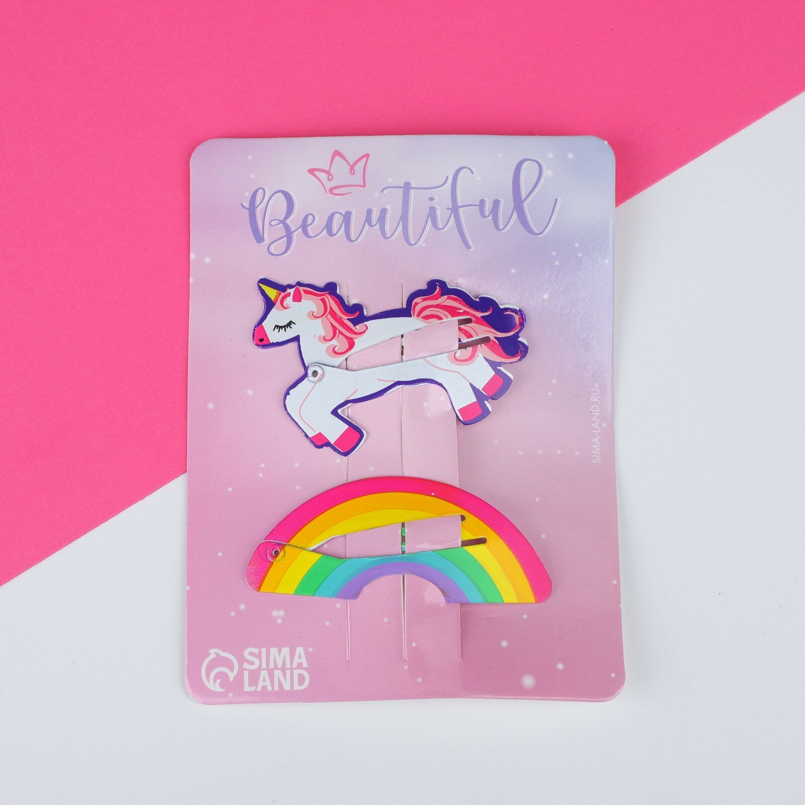 10 цен на Подарочный набор для девочки «Единорог в облаках», сумка и заколки для волос, цвет голубой/сиреневый, 7364938