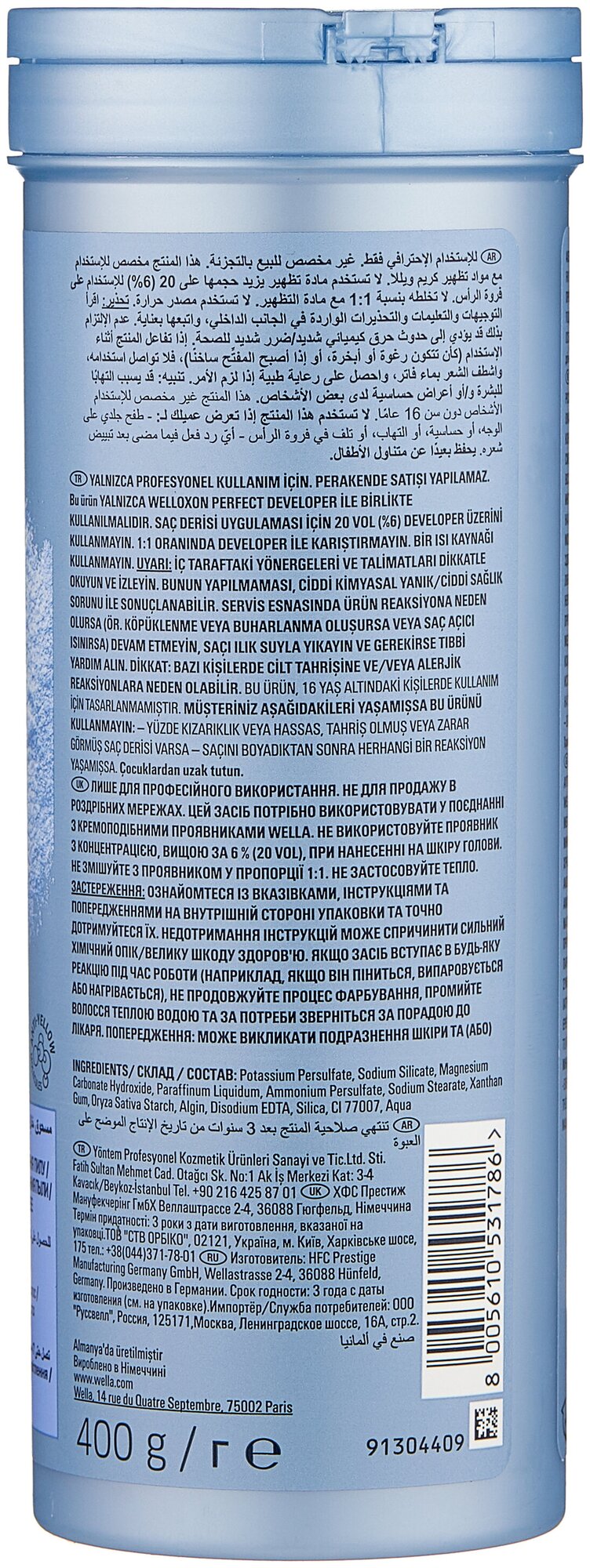 | Дополнительная информация | для профессионального применения; cостав подходит для совместного использования с 1,9 – 12% окислителями от Wella |