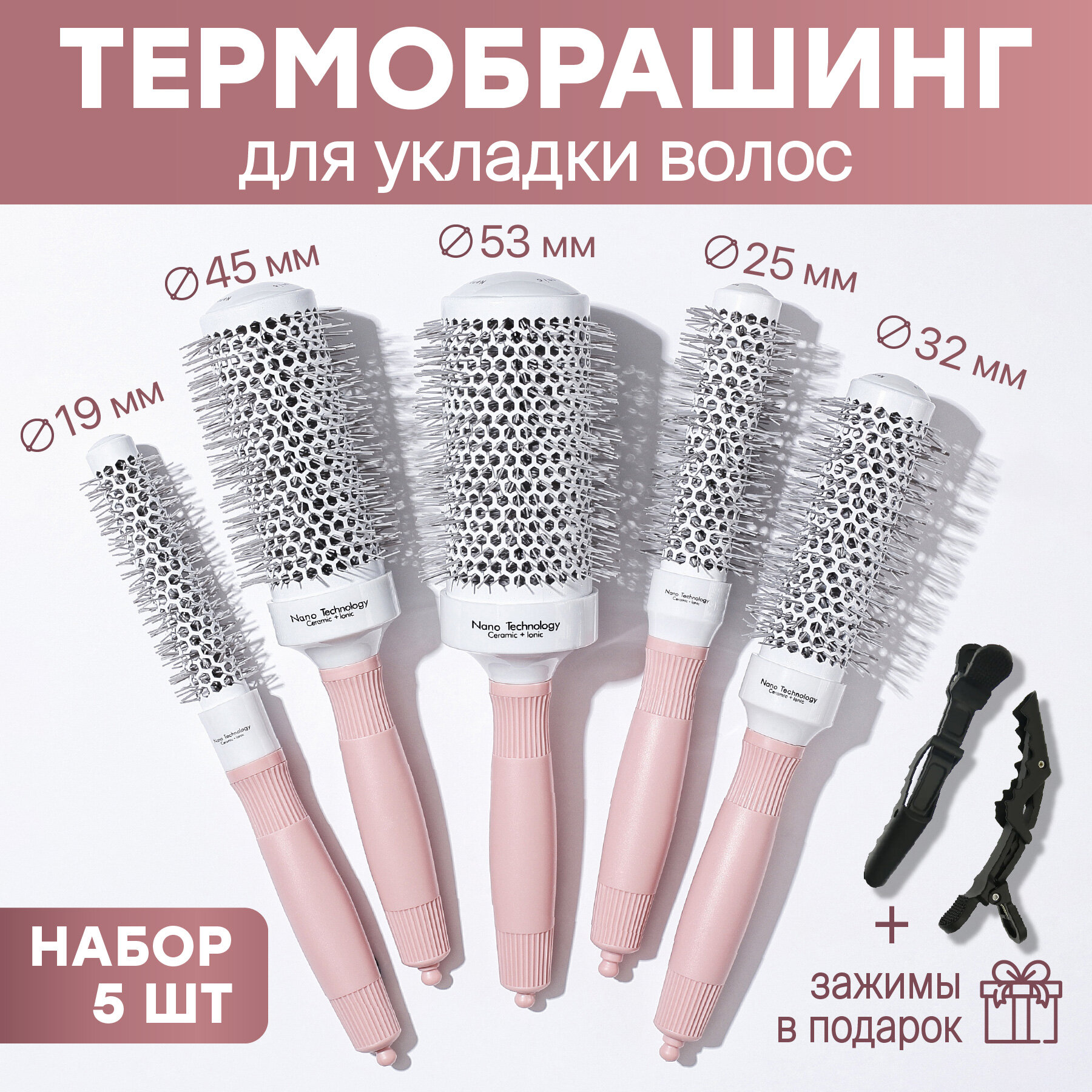 Расческа брашинг для укладки волос REVOLUT керамическая, набор 5 шт информация: