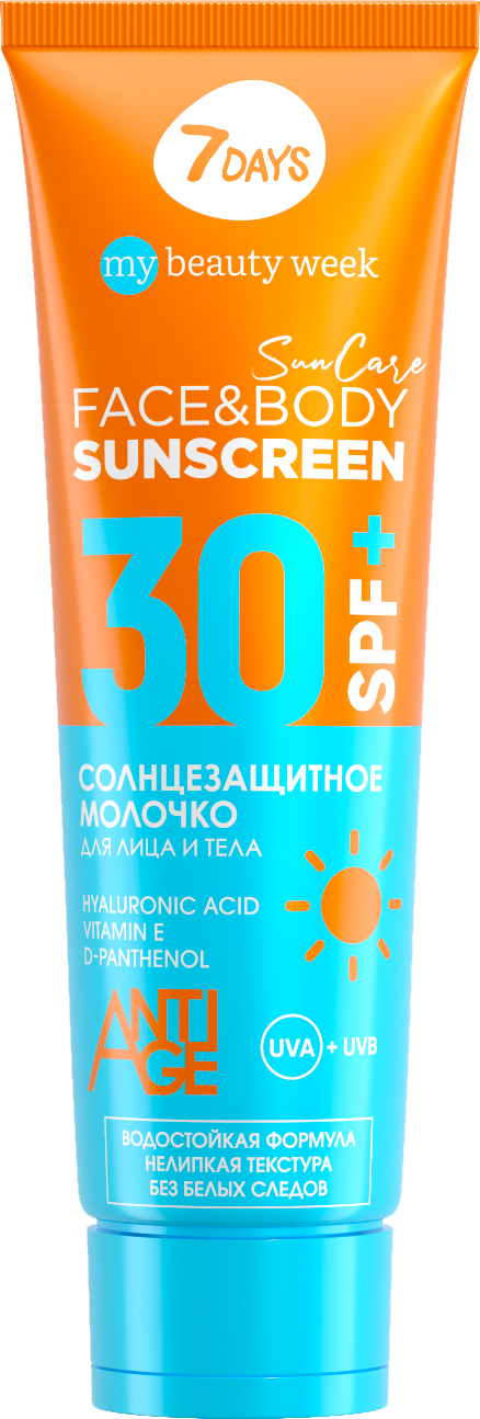 10 цен на Молочко солнцезащитное для лица и тела 7 DAYS Sunscreen SPF 30+ 200 мл