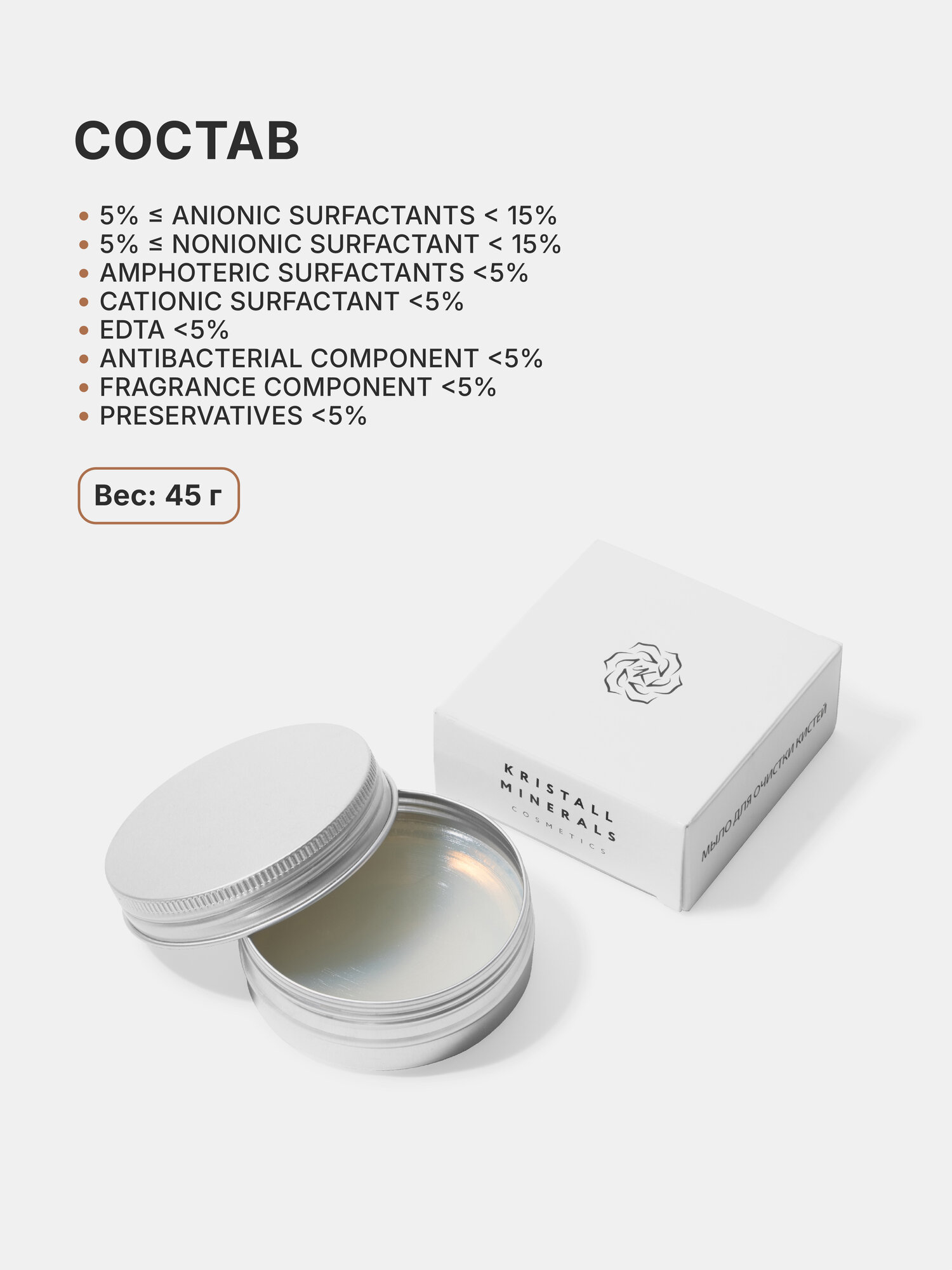 Антибактериальное мыло для очистки макияжных кистей Kristall Minerals cosmetics информация: