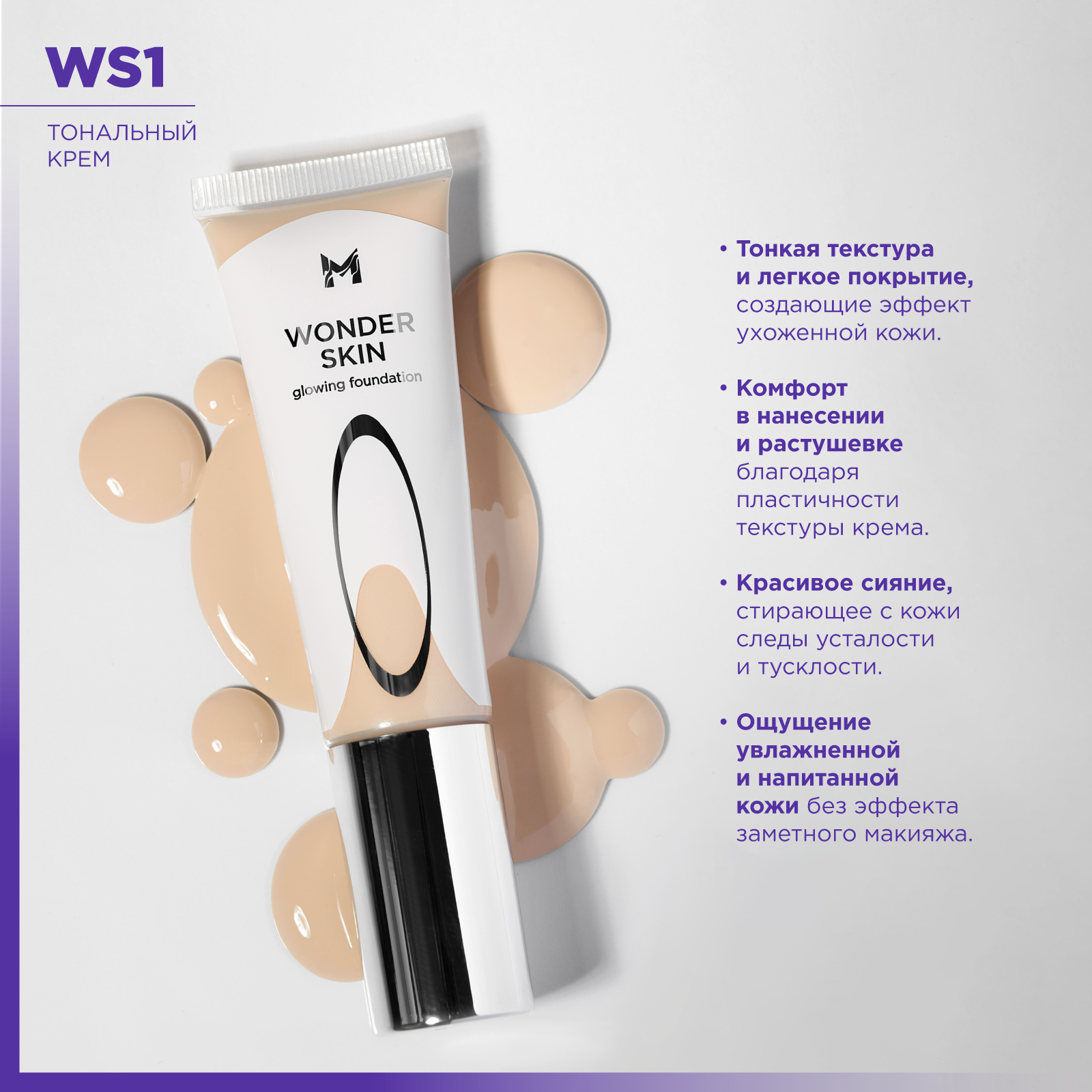 Тональный крем MANLY PRO Wonder Skin WS4, увлажняющий, сияющий, для всех типов кожи, 35мл 1 530 ₽