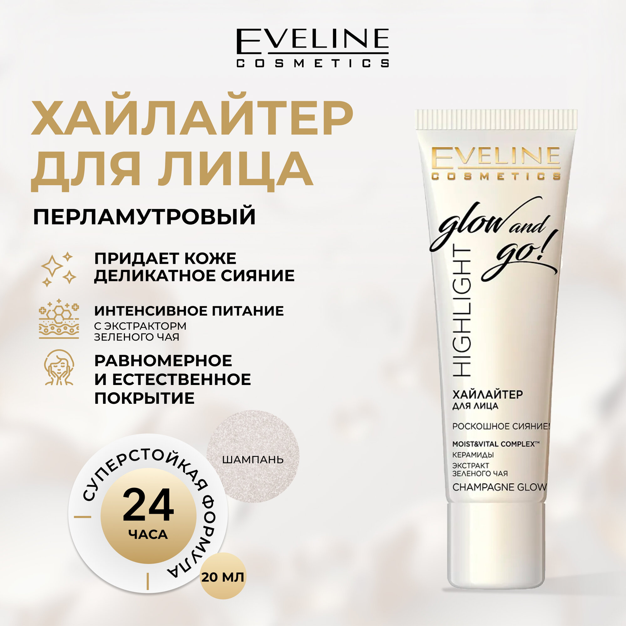 Eveline Highlight Glow and Go! Хайлайтер для лица, champagne glow, 20 мл