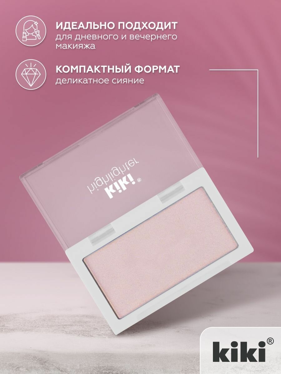 10 цен на Хайлайтер для лица и тела kiki HIGHLIGHTER тон 901 розовое сияние, сухой шиммер, рассыпчатый с перламутровым сиянием и эффектом переливания, кики