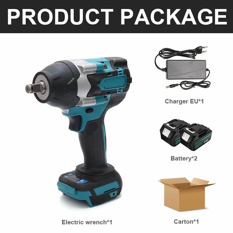 10 цен на Ударный гайковерт , бесщеточный,700N,1/2 дюйма,2 АКБ и 1 ЗУ,2Аh