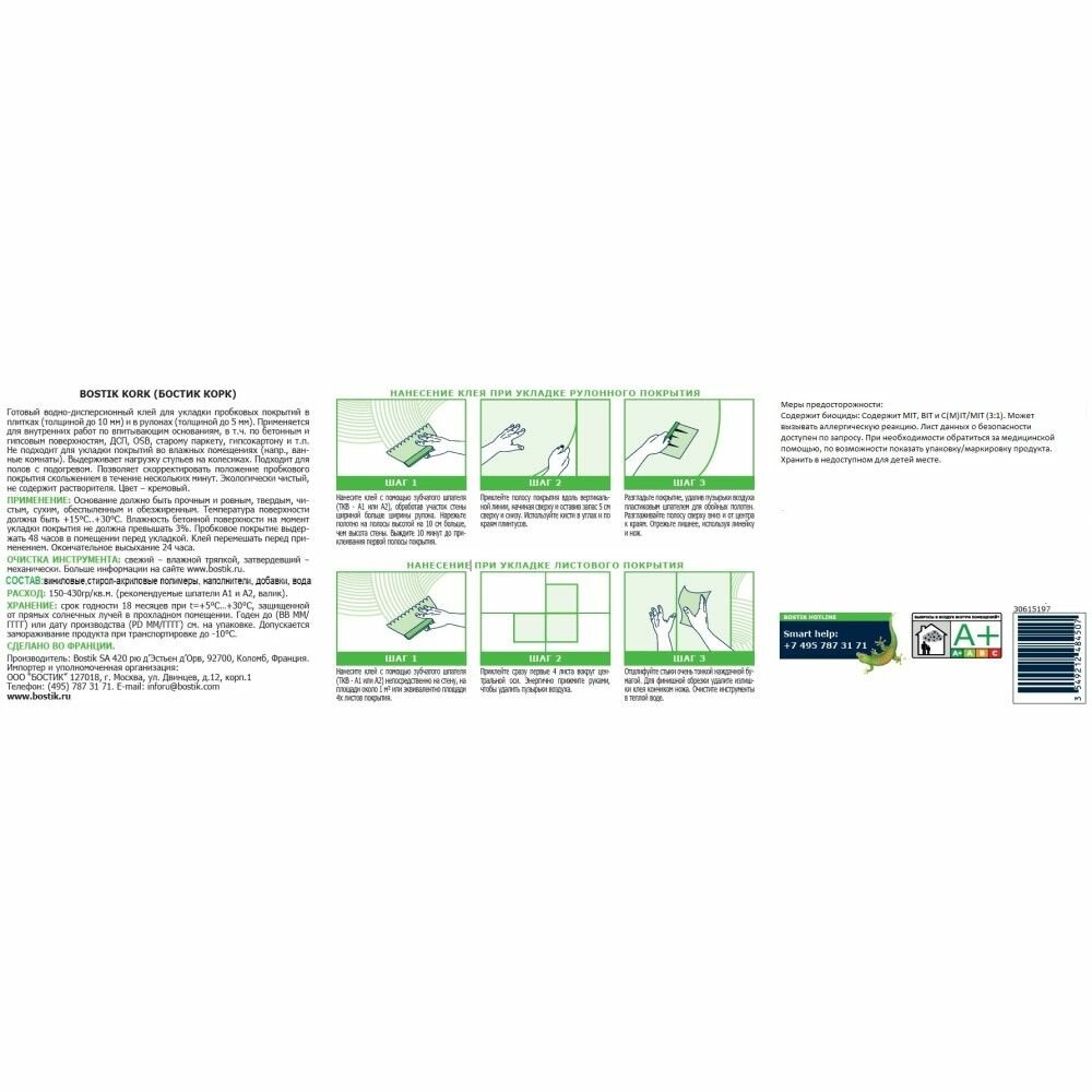 Клей для пробки Bostik Kork 3кг информация: