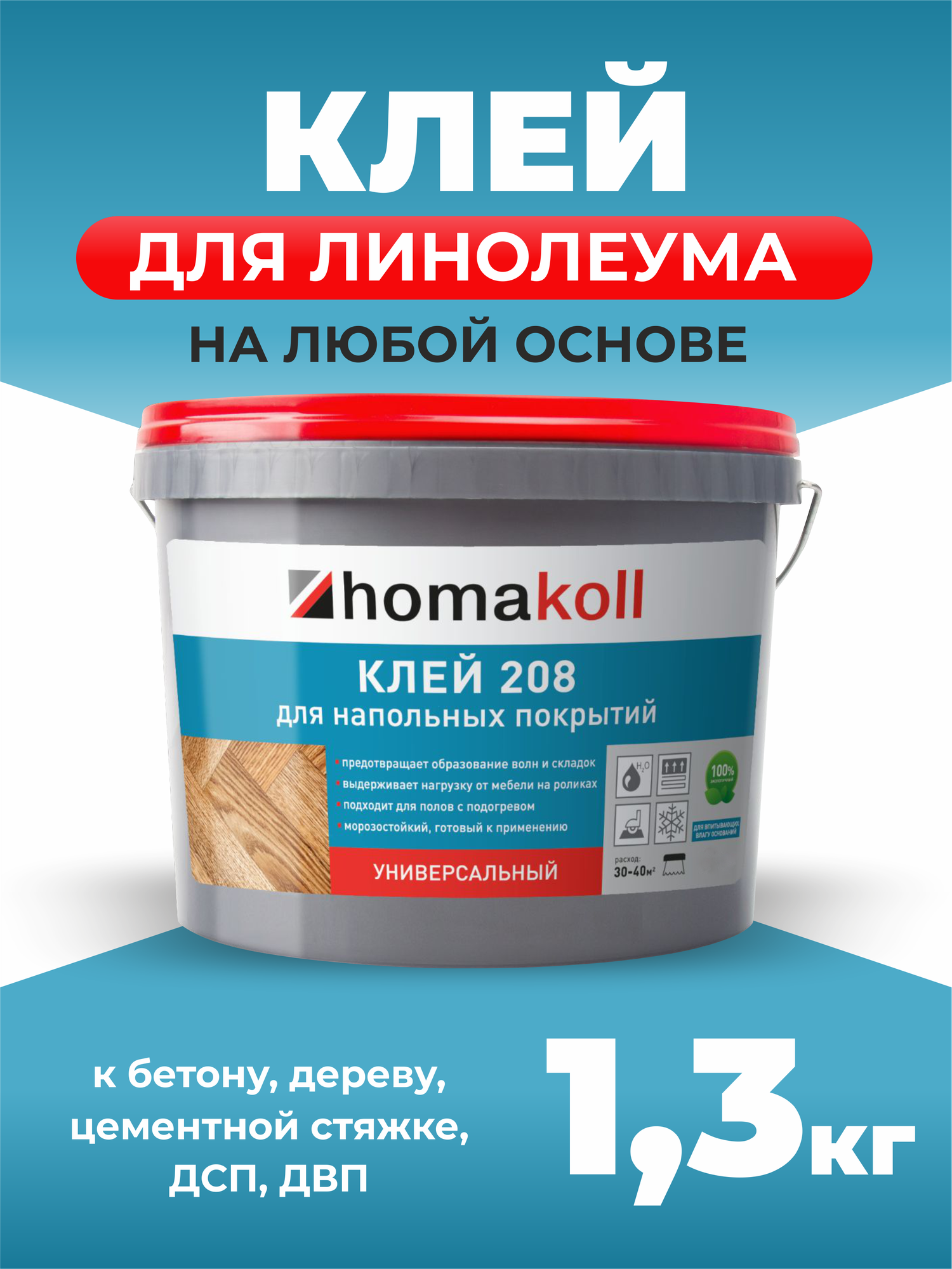 Клей homakoll 208 для напольных покрытий, универсальный 1,3 кг для приклеивания рулонных покрытий, впитывающих оснований 795 ₽