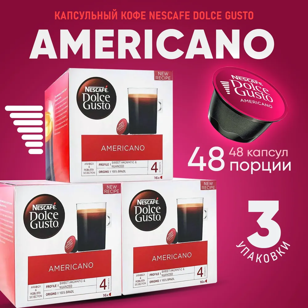 Кофе в капсулах Nescafe Dolce Gusto Americano, 48 капсул (3 уп х 16 шт), американо информация: