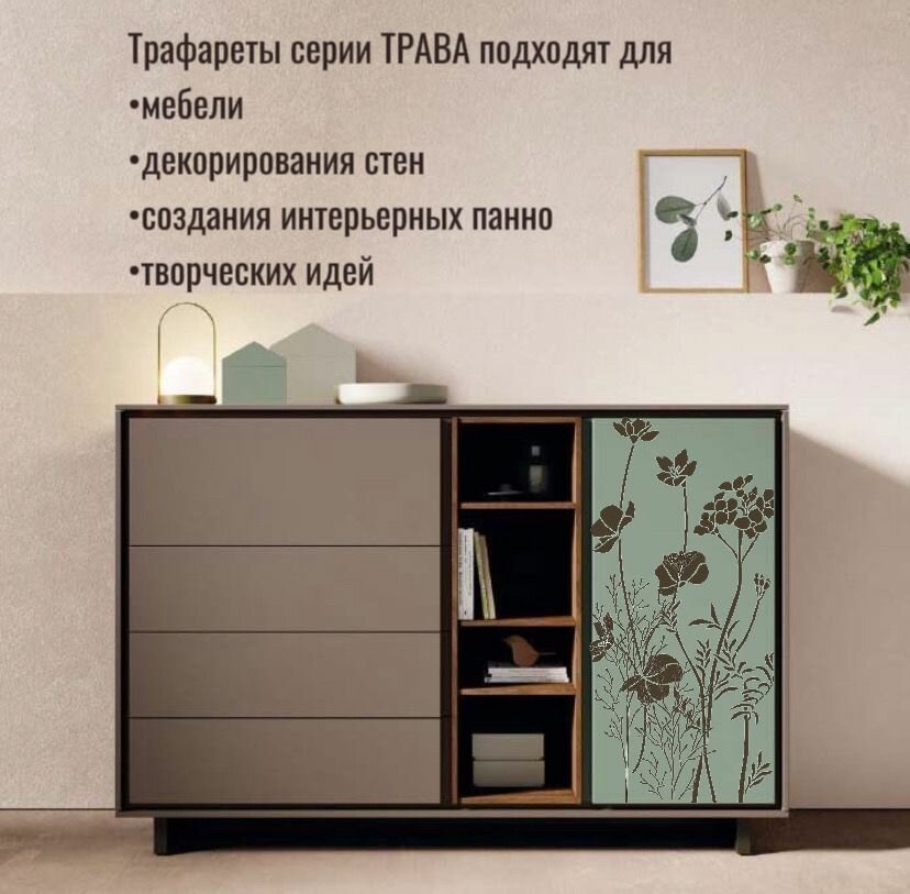 Отзывы на Трафарет для декора и стен - серия "трава" №13 толщина ПЭТ - 0,5 мм размер 60х20 см для штукатурки и краски