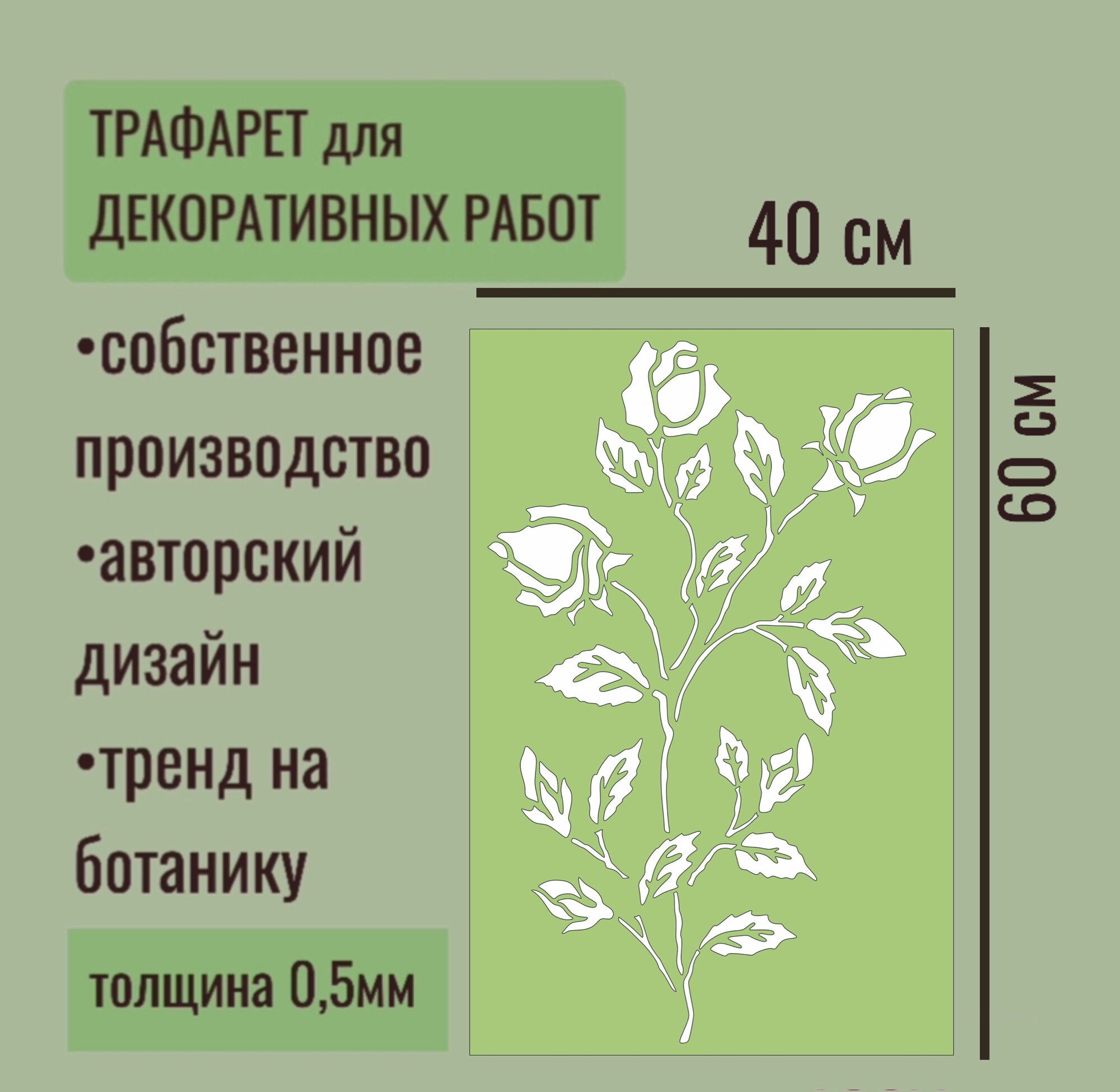 Отзывы на Трафарет для декора и стен - серия "трава" Роза толщина ПЭТ - 0,5 мм размер 60х40 см для штукатурки и краски
