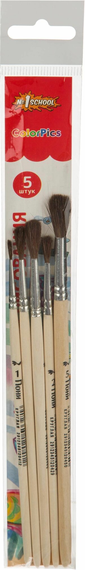 Кисти №1 School "ColorPics", пони круглые №1, 2, 3, 4, 5, 5 шт 356 ₽