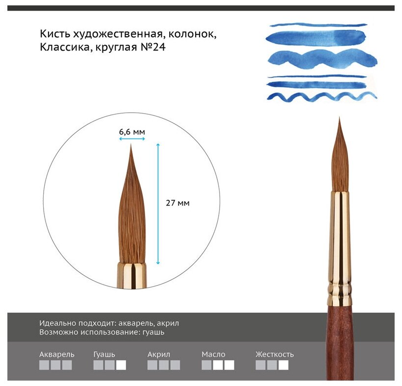 Кисть художественная колонок Гамма «Классика», круглая №24 информация: