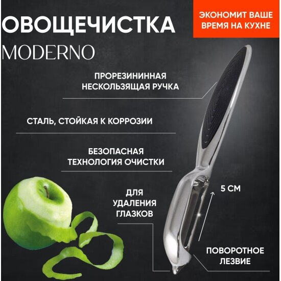 Овощечистка с вертикальным лезвием, прорезиненная ручка Mallony MODERNO 984044 информация: