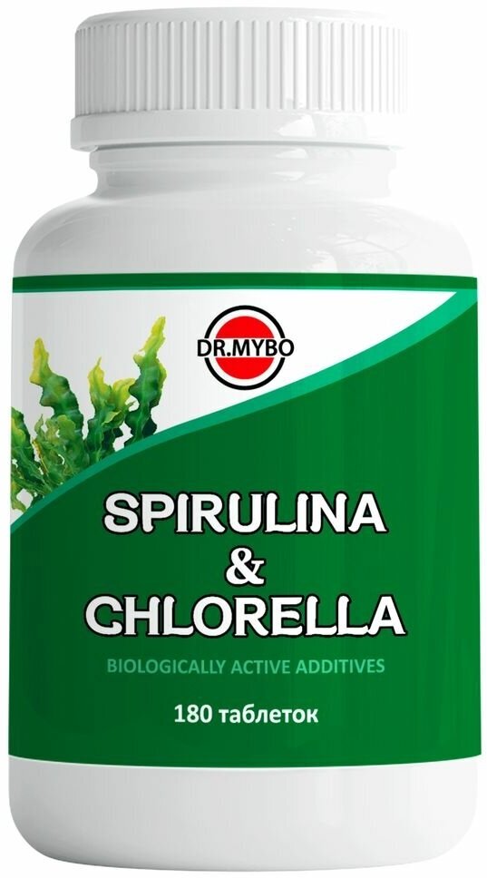 Спирулина+Хлорелла (микс) в таблетках, суперфуд, укрепление иммунитета, очищение от токсинов и шлаков, насыщение витаминами и микроэлементами, Dr.Mybo, 180таб информация: