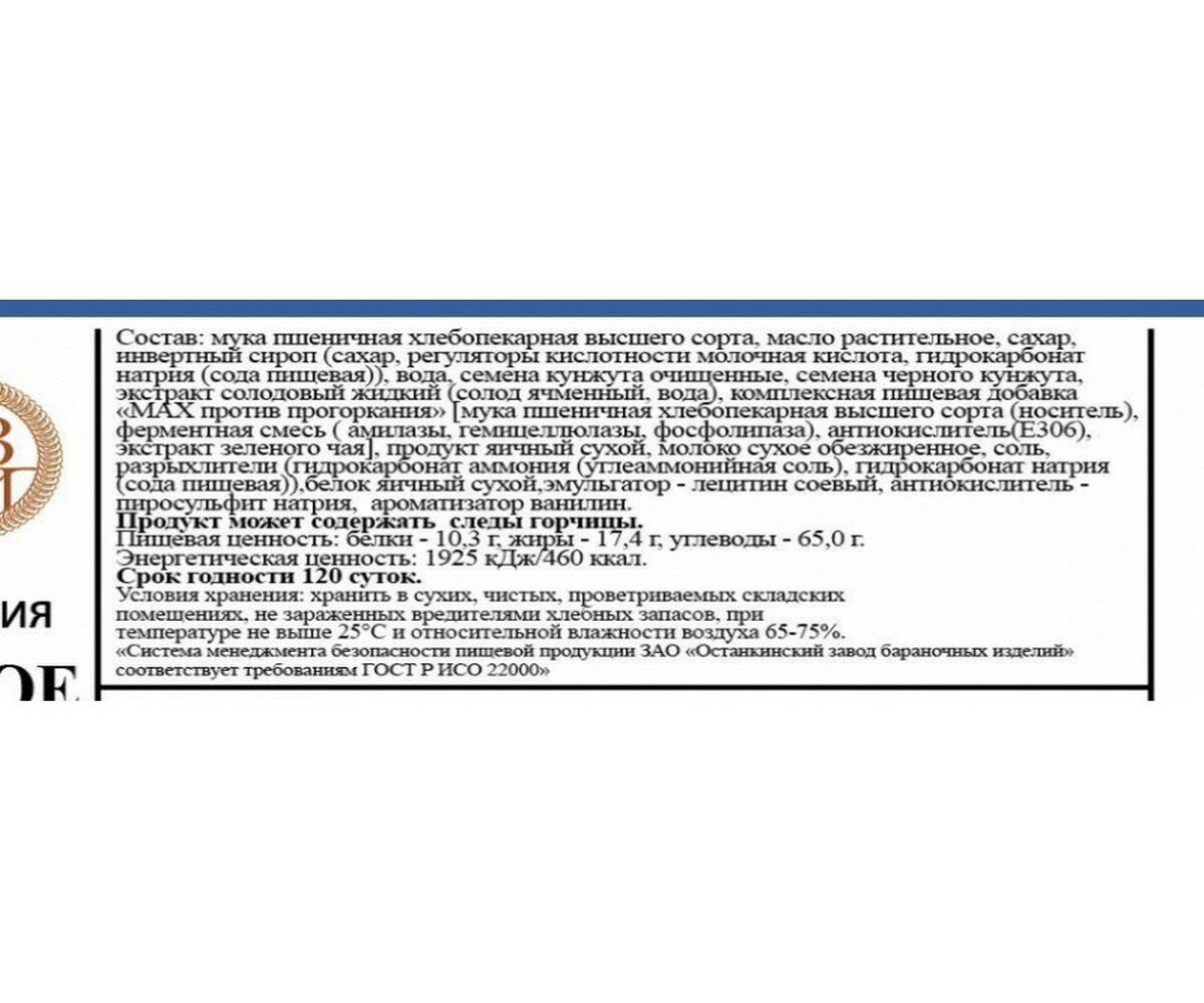 | Дополнительная информация | продукт может содержать следы горчицы; срок годности: 120 суток |