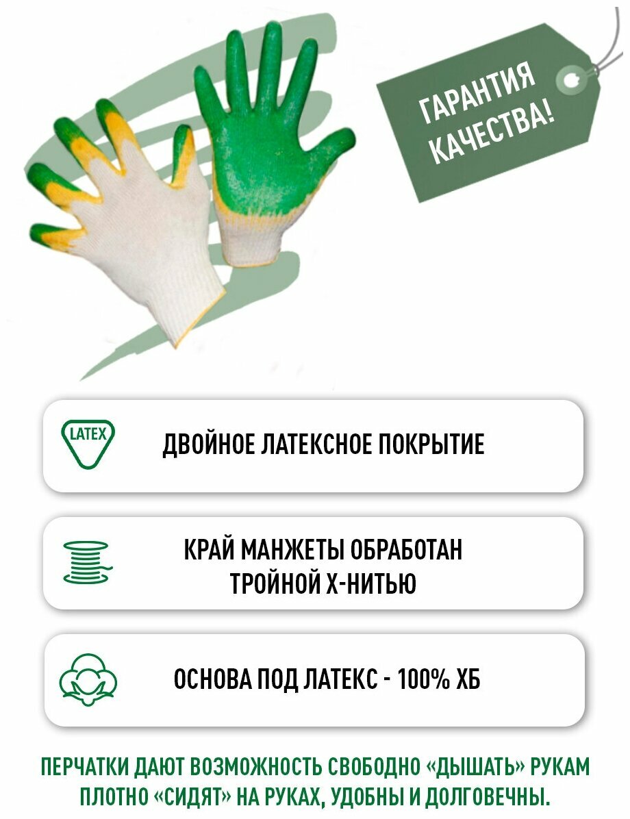 Перчатки рабочие ,двойной латексный облив 10 пар, зеленые. информация: