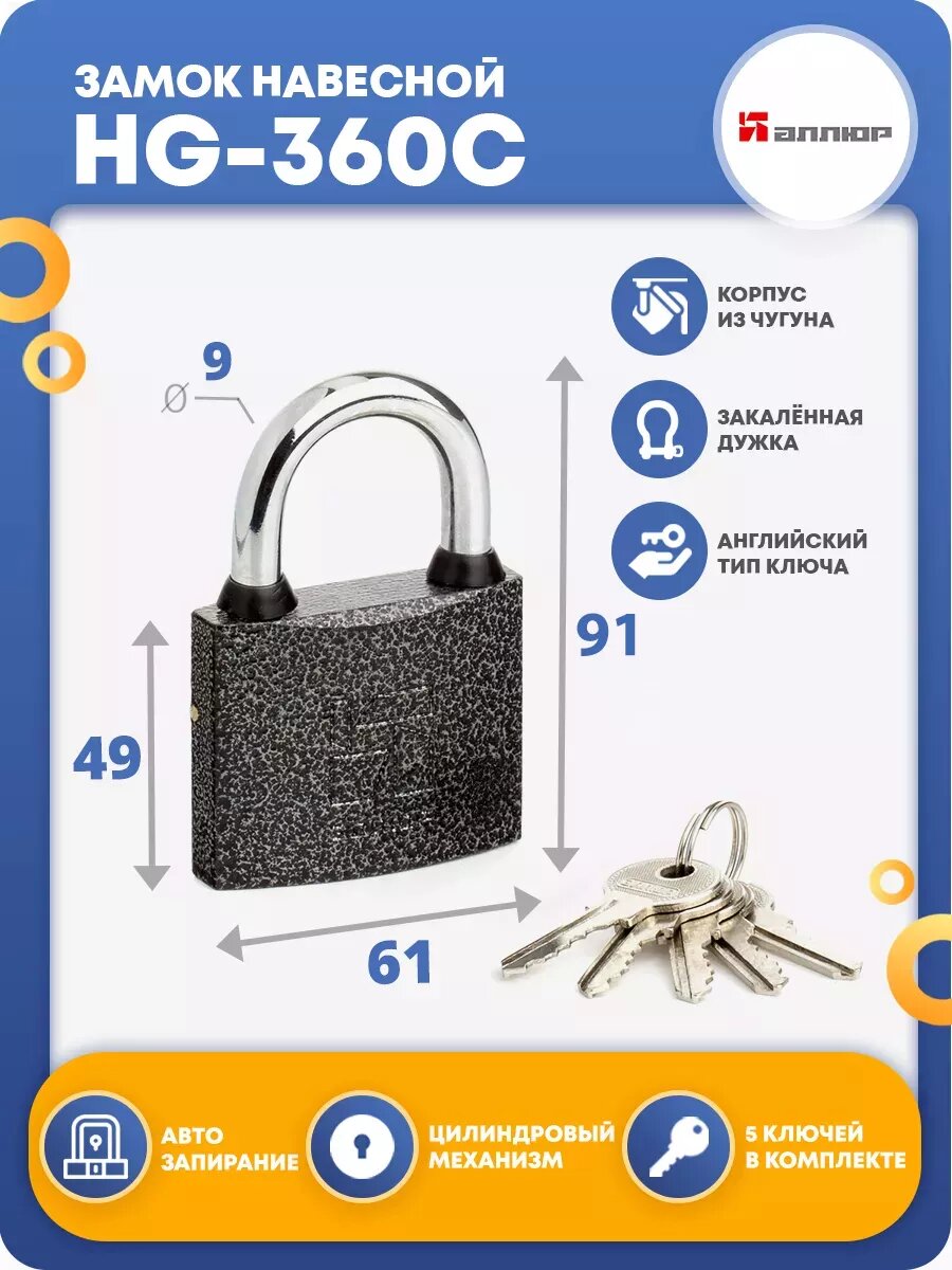 Аллюр Замок навесной Hg-360c ВС1Ч-360 полимер 5 ключей 3375 . 1 216 ₽