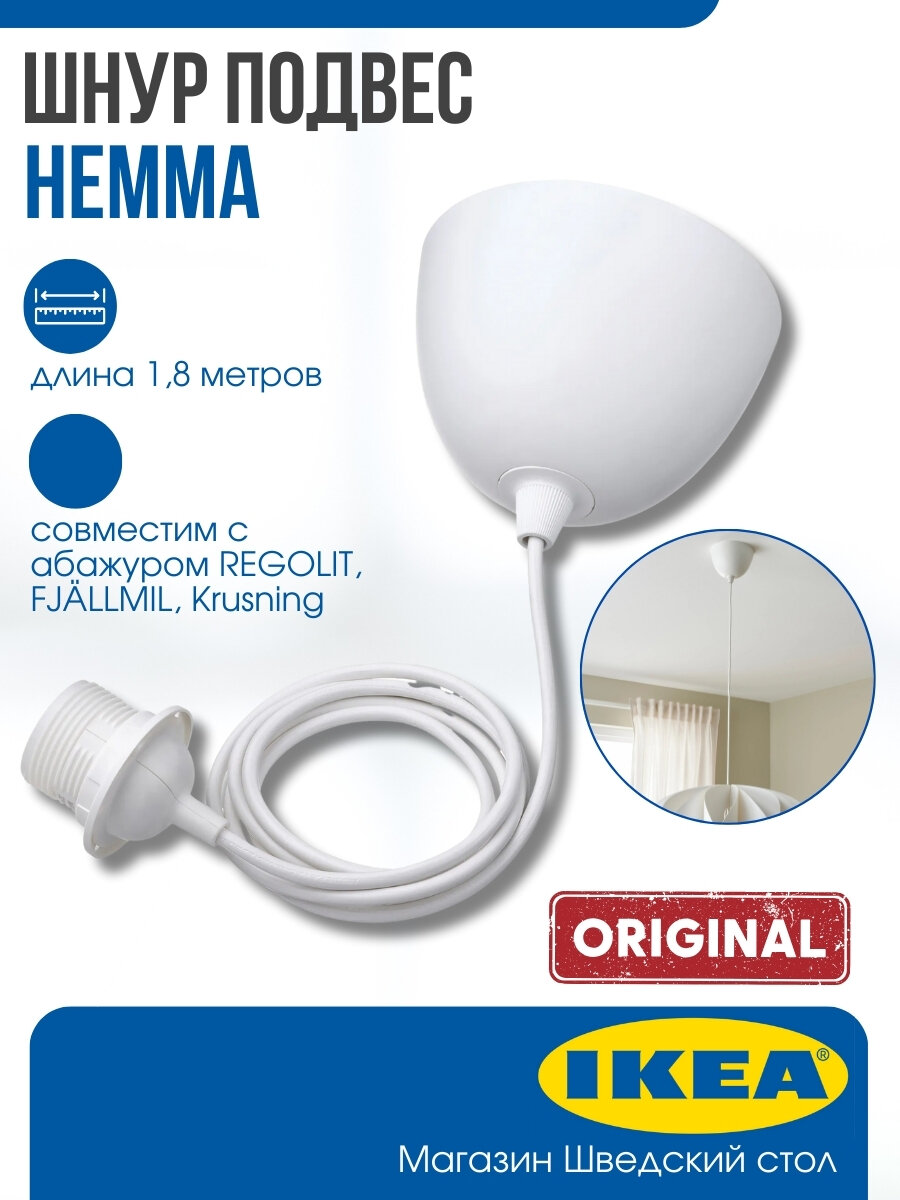 10 цен на Шнур-подвес для абажура IKEA HEMMA, 1,8 м, белый. Икеа Хемма