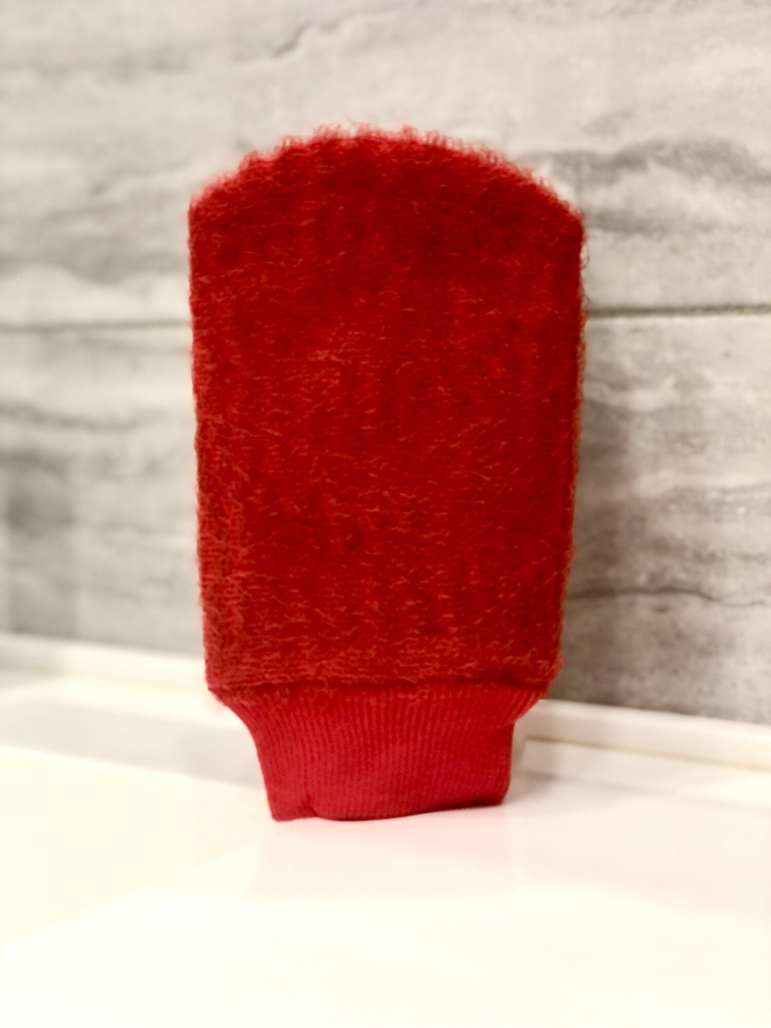 Отзывы на Массажная мочалка, варежка для тела жёсткая, рукавичка скраб, красный