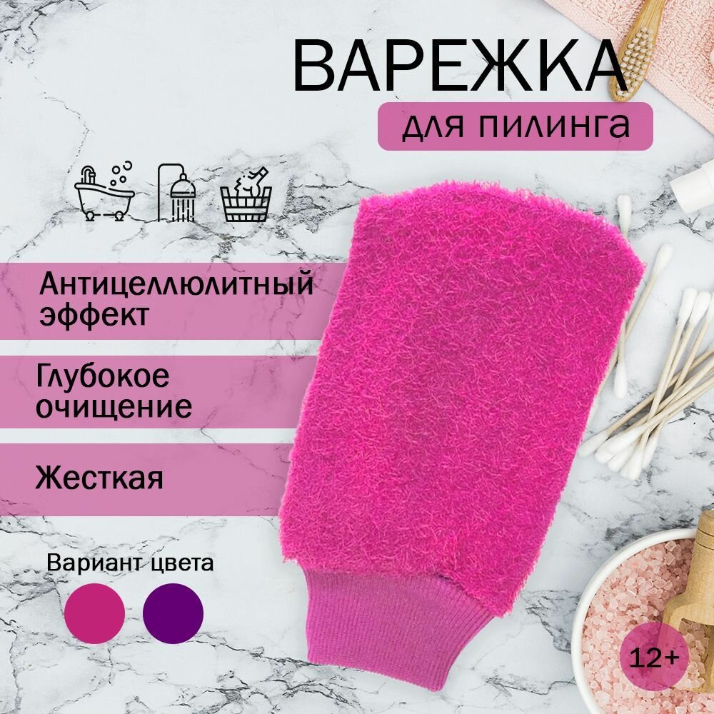 Мочалка / Варежка скраб / Для бани жесткая розовая рукавица информация: