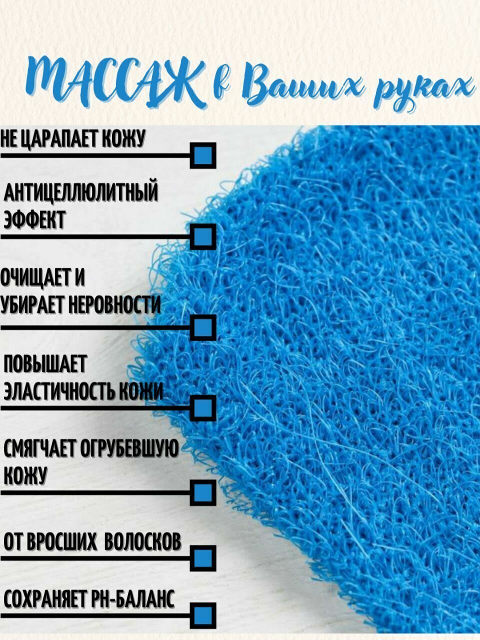 | Эффект | антицеллюлитный / лимфодренажный / массажный / отшелушивание / очищение / пилинговый / тонизирование |