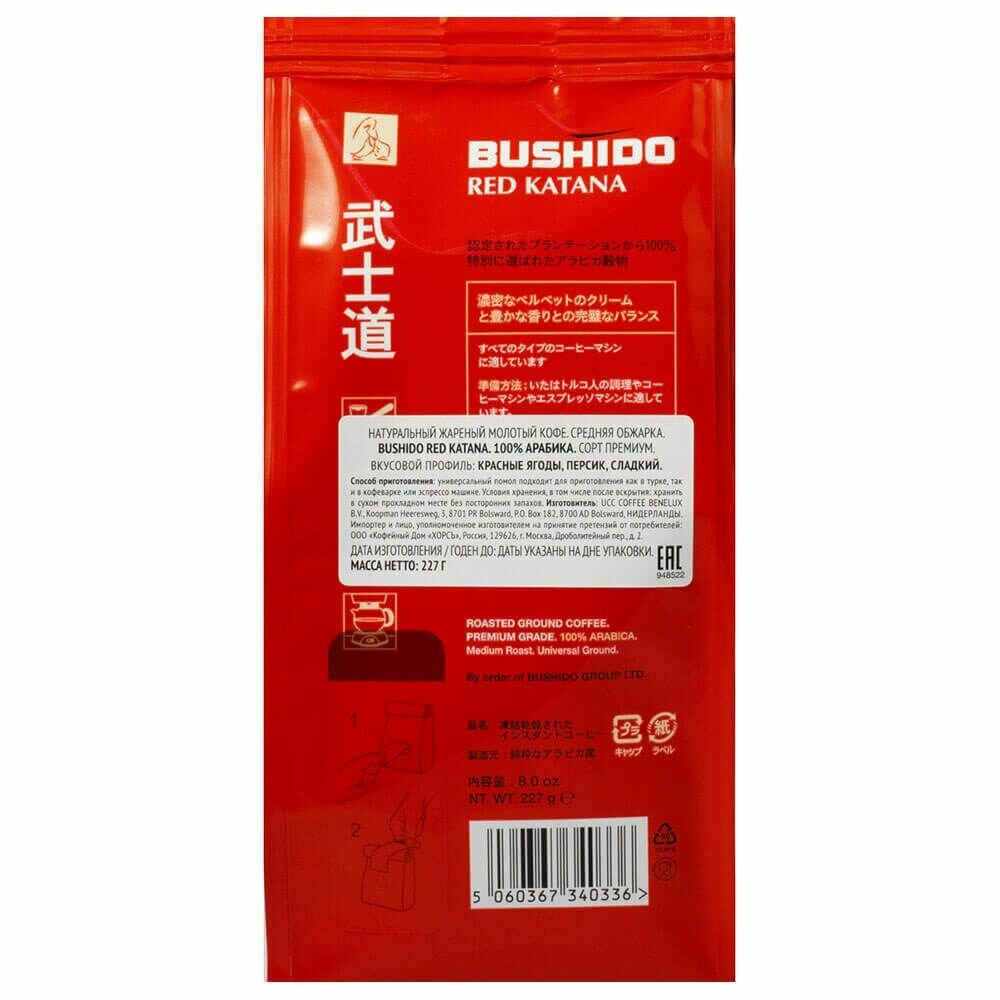 Кофе молотый BUSHIDO Red Katana 227 гр. х 2 шт. информация: