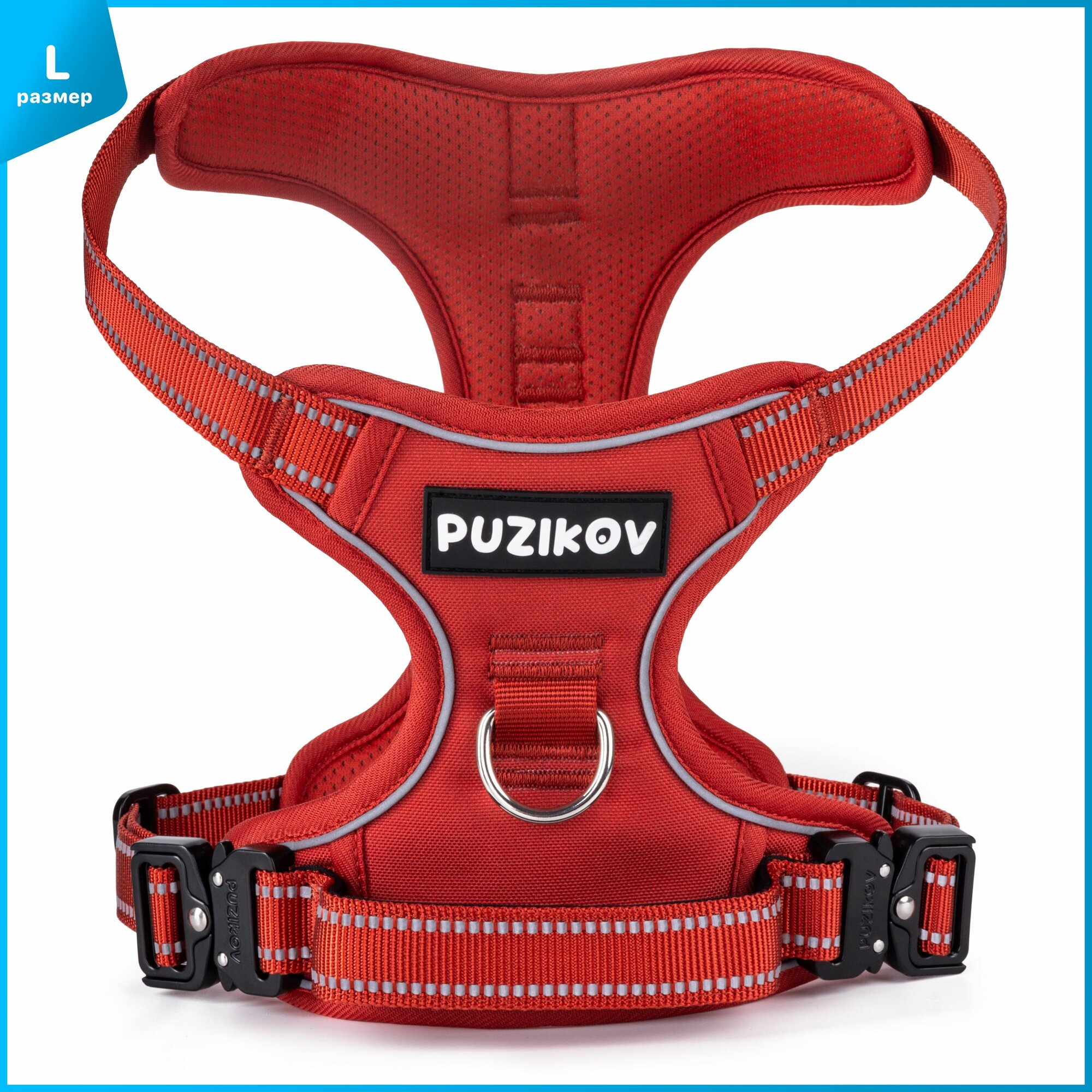 Шлейка для собак с фиксаторами из металла и мягкой ручкой, размер L, красный, PUZIKOV / пузиков информация: