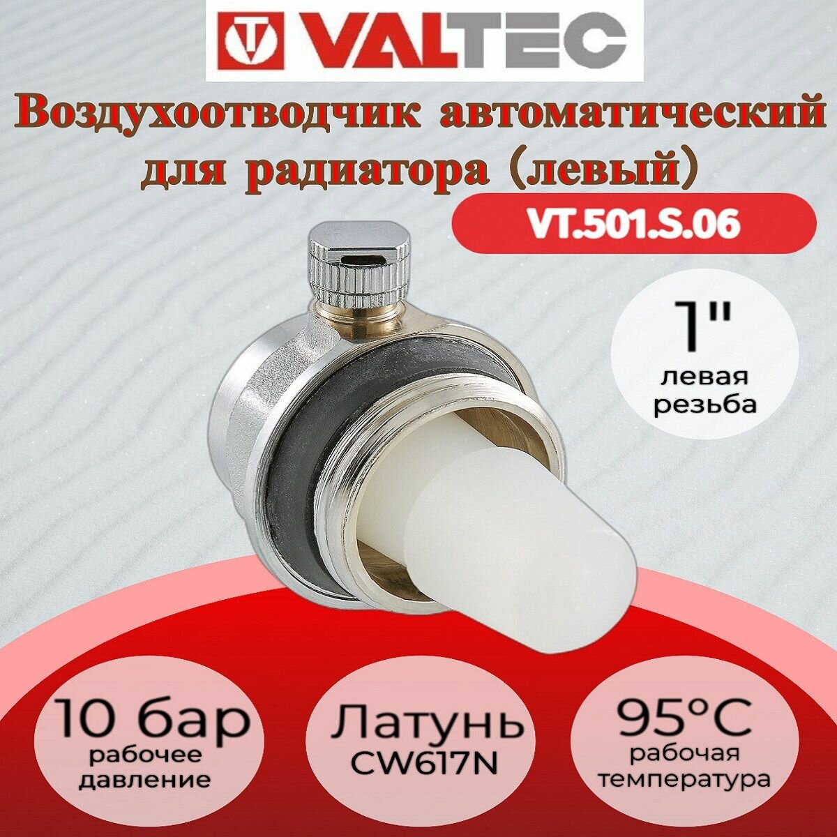 10 цен на Воздухоотводчик VALTEC для радиаторов, автоматический, левый 1 VT.501.S.06