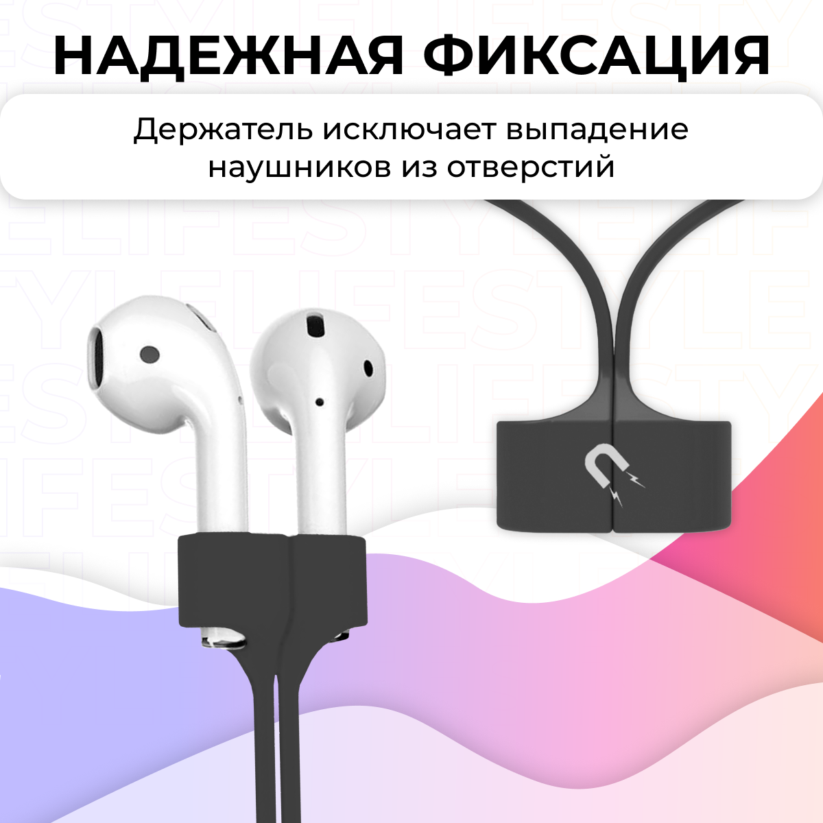 Шнурок-держатель для беспроводных наушников / Шнур с магнитным креплением для Apple AirdPods / Черный 285 ₽