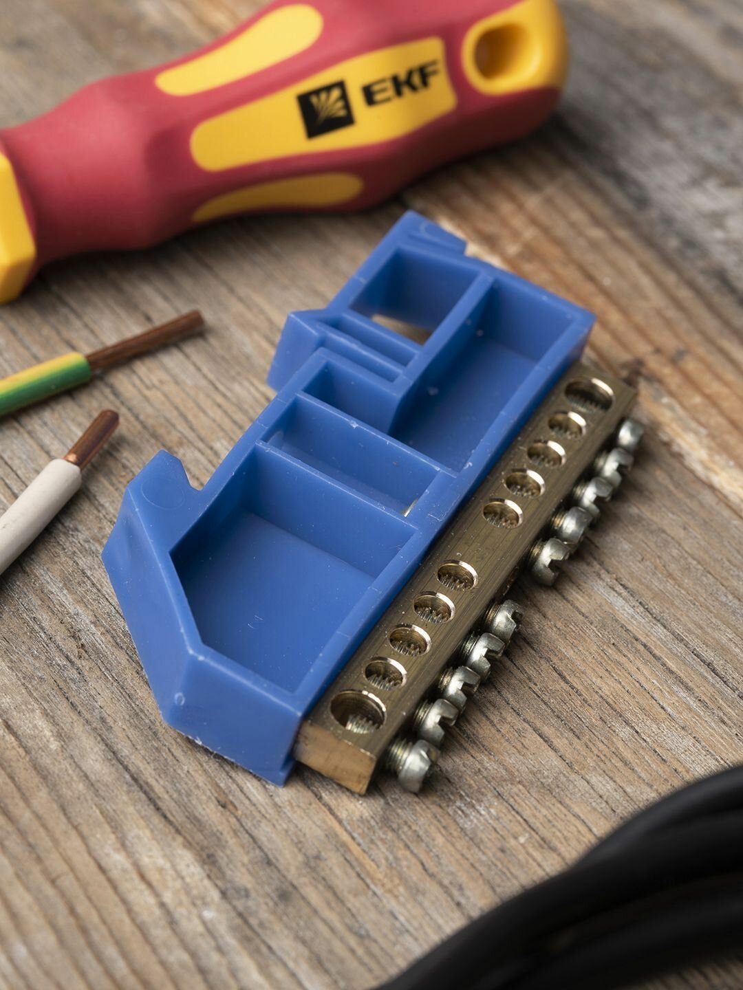 Шина нулевая "0" N (6х9мм) 10 отверстий латунь синий изолятор на DIN-рейку розничный стикер EKF PROxima - 1 шт информация: